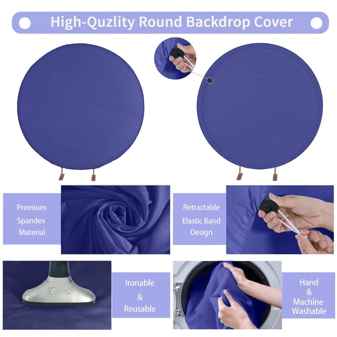 Haefoo 7.2Ft Navy Blue Round Backdrop Cover For 5 To 7.2Ft Circle Arch Stand Adjustable Wrinkle Free Circle Backdrop Cover For