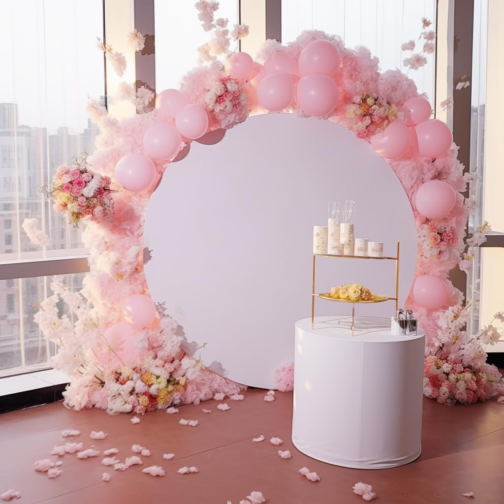 Q: What occasions is the Haefoo round backdrop cover suitable for?A: This backdrop cover is perfect for a variety of occasions including birthday parties, wedding ceremonies, baby showers, bridal showers, graduations, and festive gatherings, enhancing the aesthetic appeal of any event.