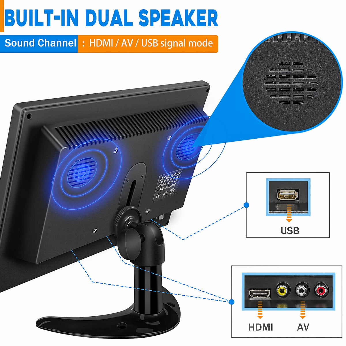 Haiway 10.1 Inch Security Monitor, 1024X600 Resolution Small Hdmi Monitor Small Portable Monitor With Remote Control With Built