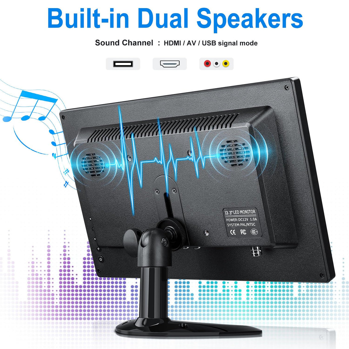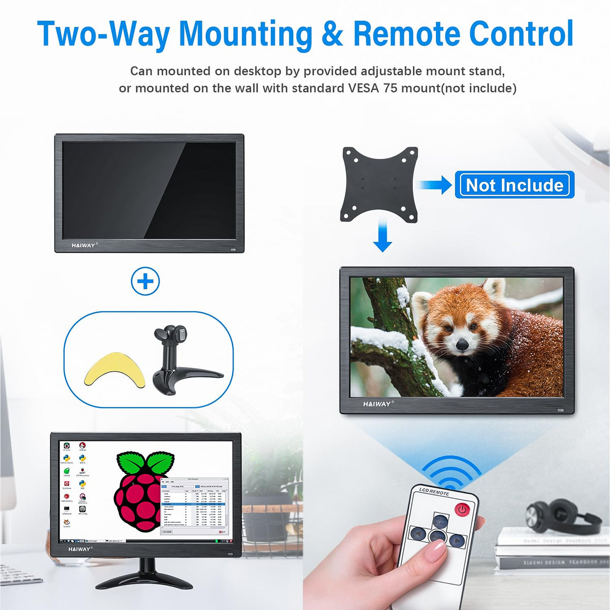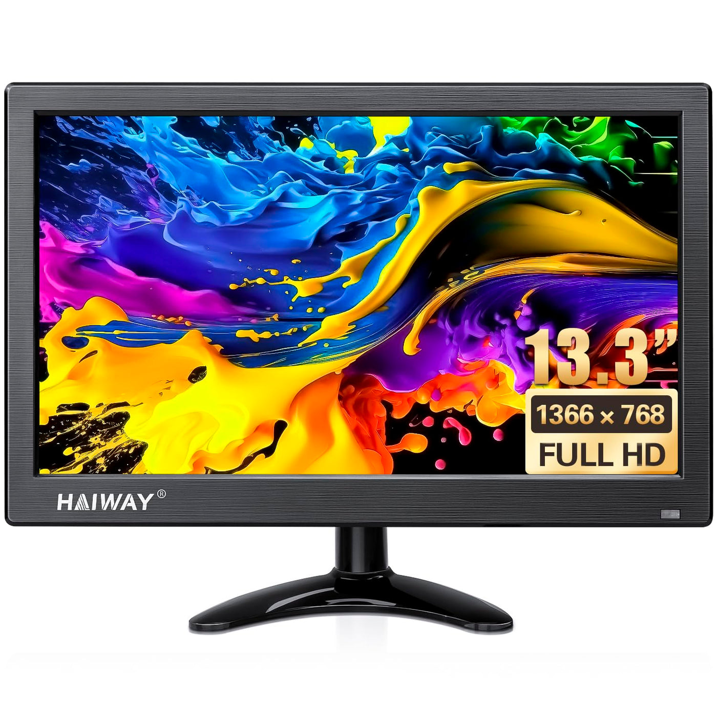 Haiway Small Pc Monitor With Multiple Signal Input Modes Great For Home And Office Video Input Interface: Hdmi/Vga/Bnc/Av/Usb Video Format: Pal/Ntsc Auto Switching Size: 13.3Inch Resolution: 1366*768 Aspect Ratio: 16:9 Supporting Bnc/ Hdmi/ Vga / Av / Usb Video Interfaces With Expansive Connectivity And Strong Versatility. Hdmi Input For For Raspberry Pi, Dslr, Pc Or Other Devices With Hdmi Port Use. Which Delivers The Unbeatable High-Definition Video And Image. Vga Input Any Pc With An Vga Port Can Be Connected As A Second Mini Monitor, Either At Home Or In The Office, And Etc. Bnc Input Connected With Professional Cctv Surveillance Equipment, Use This Monitor As A Security Monitor. Av Input Connected To Dvd, Vcd, Tv-Box As A Small Tv. Use As Vehicle Rear View Camera Monitor, Also The Perfect Size For Viewing Vehicle Detection Camera Images In The Street. Usb Input It Also Support Usb Multimedia Playback For Movie By Connect To Usb Stick Or Usb Flash Drive. ( Note : Usb Port Support Mp3 Mp4 Format, Do Not Support Powered ) What'S In The Box 1 X Haiway 13.3'' Small Monitor 1 X Adjustable Stand 1 X Stand-Sticker 1 X Hdmi Cable 1 X Bnc Cable 1 X Ac/Dc Power Adapter 1 X Usb Power Cable 1 X Remote Control 1 X User Manual 1 X Packing Carton Warm Tips: The Monitor Default Hdmi Mode. There No Built-In Battery, It Should Be Used With Dc 12V-1A Power Plug In For Power Supply. Please Be Aware Of The Screen Size Before You Place An Order.