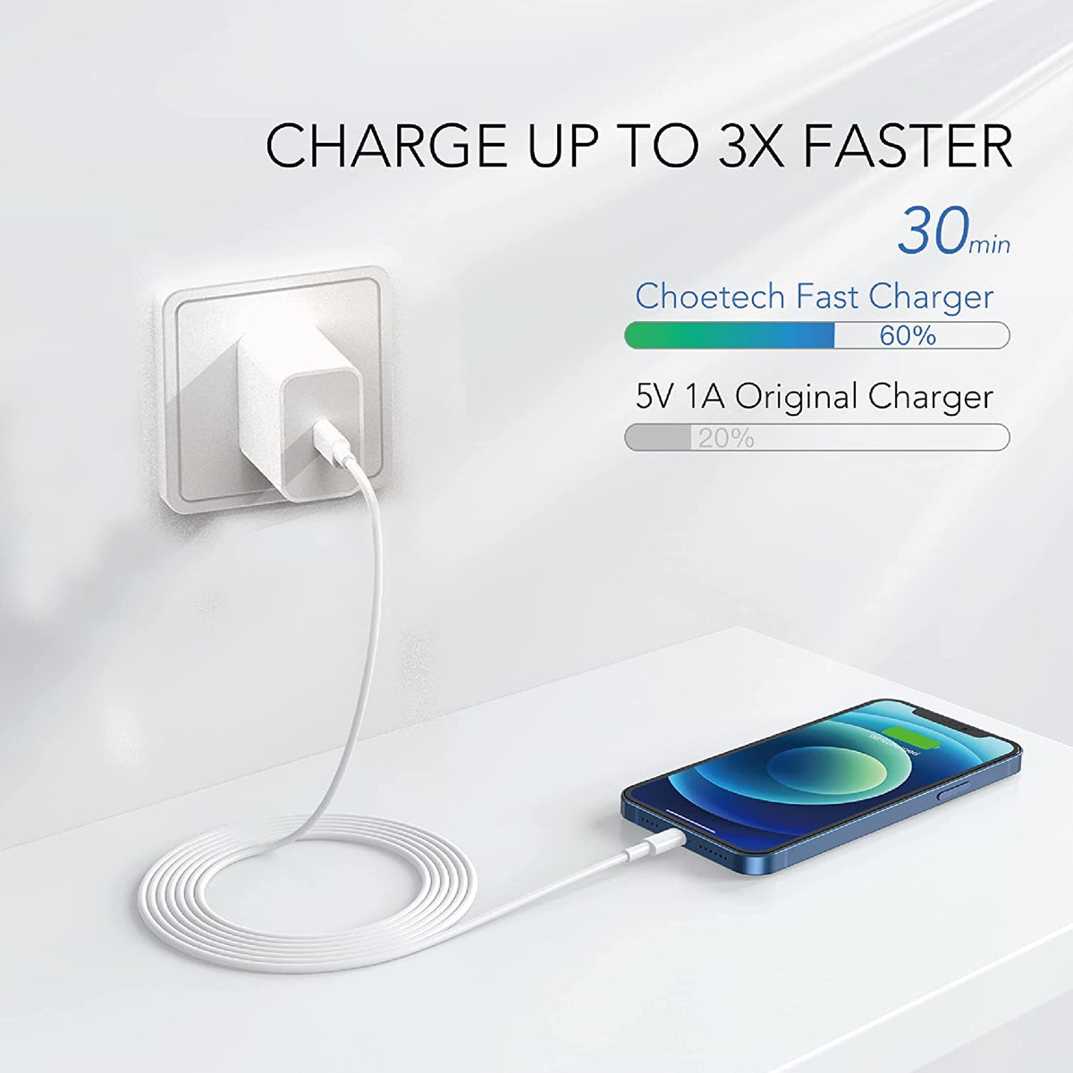 Q: How fast does this charger charge my iPhone?A: This USB C Fast Wall Plug can charge your iPhone up to 50% in just 30 minutes, making it three times faster than standard chargers.