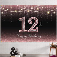 Hamigar 6X4Ft Happy 12Th Birthday Banner Backdrop 12 Years Old Birthday Decorations Party Supplies For Girls Rose Gold