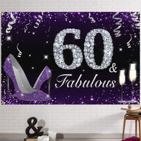Hamigar 6X4Ft Happy 60Th Birthday Banner Backdrop 60 Fabulous Heels Birthday Decorations Party Supplies For Women Purple