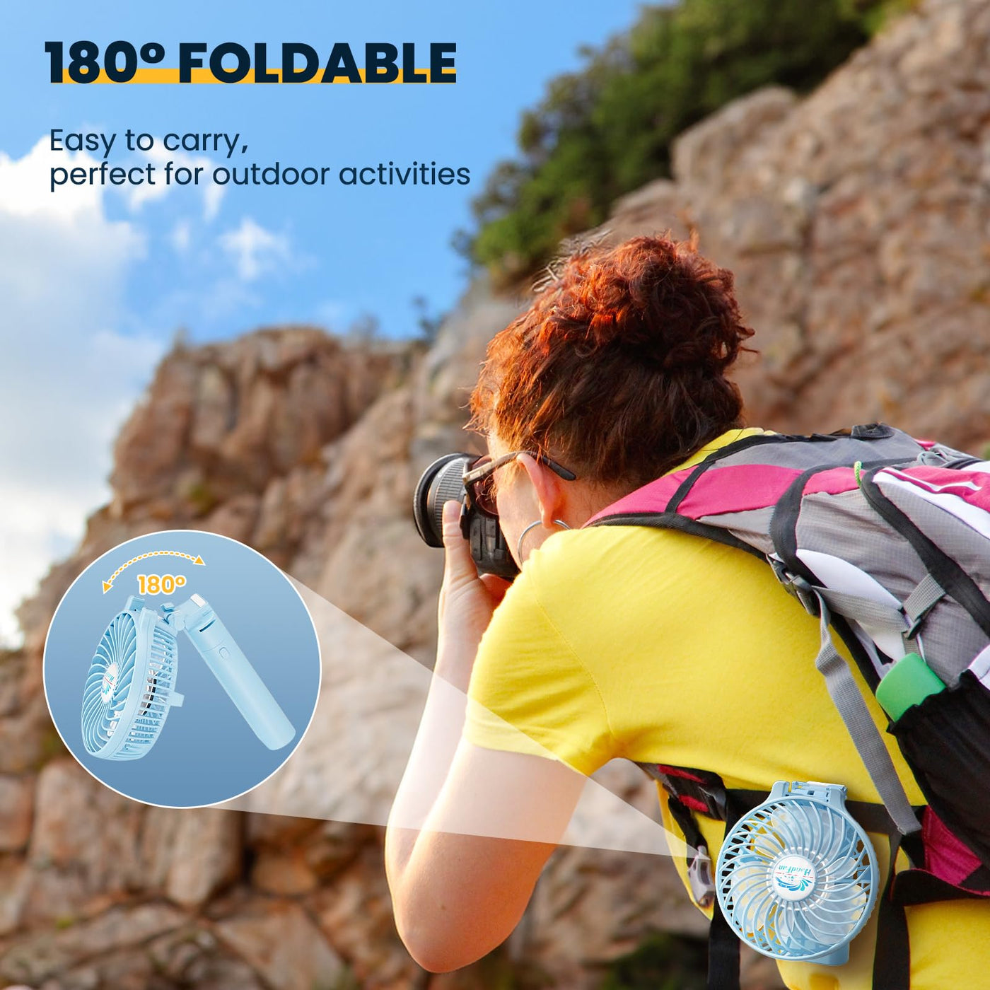 ?Large Blades, Large Air Volume?Hf310 Handheld Fan Uses 3.5-Inch 6-Blade Fan Blades And The Latest Brushless Motor. The High-Speed Motor And Large Fan Blades Ensure Powerful Air Speed And Large Blowing Area. A Summer Essential To Keep You Cool On Hot Days | ?Max 20 Hours Cooling Time? Built-In 5200Mah Rechargeable Battery, The Real Capacity - Not False Claims. This Hand Fan Provides Up To 20 Hours Of Cooling On A Single Charge, Ensuring You Stay Cool During Travel, Concerts, Workouts, And Outdoor Activities | ?2-In-1 Hand Fan?Not Just A Portable Fan, But A Useful And Convenient Charger. Power Handle Design, It Doubles As A Backup Power To Charge Your Devices When Needed, Making It A Must-Have For Your Travels And Summer. The Separated Fan Head Can Also Be Plugged Into The Usb Port To Operate Normally | ?Foldable And Easy To Carry?Foldable Design, The Hand Fan Is Palm-Sized When Folded, Easily Put Into Any Bag For Easy Portability. This Portable Fan Can Be Adjusted Within The Range Of 0