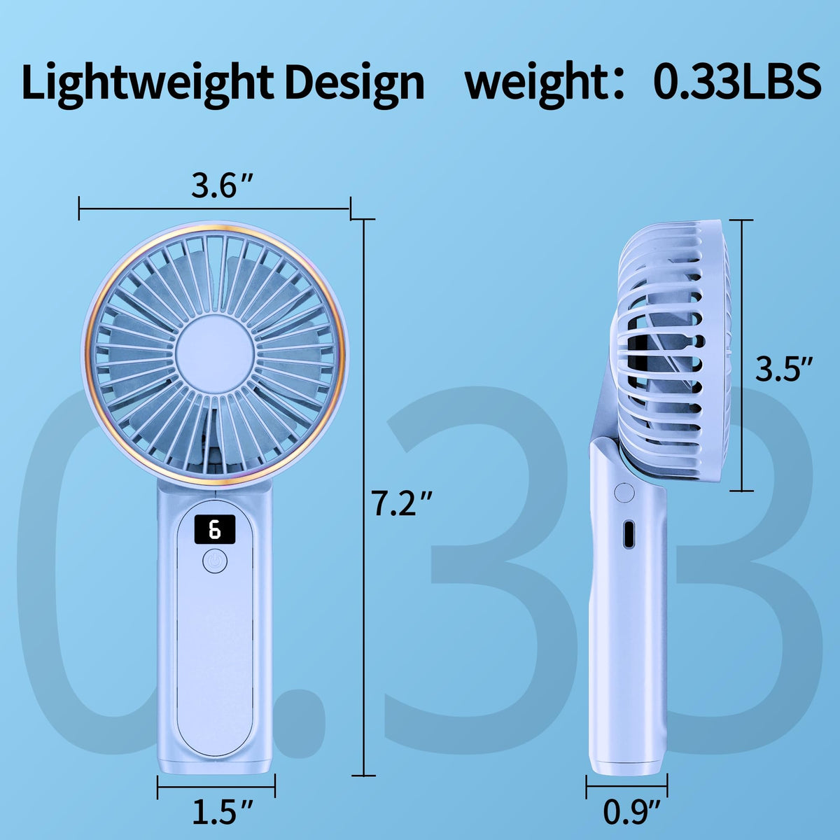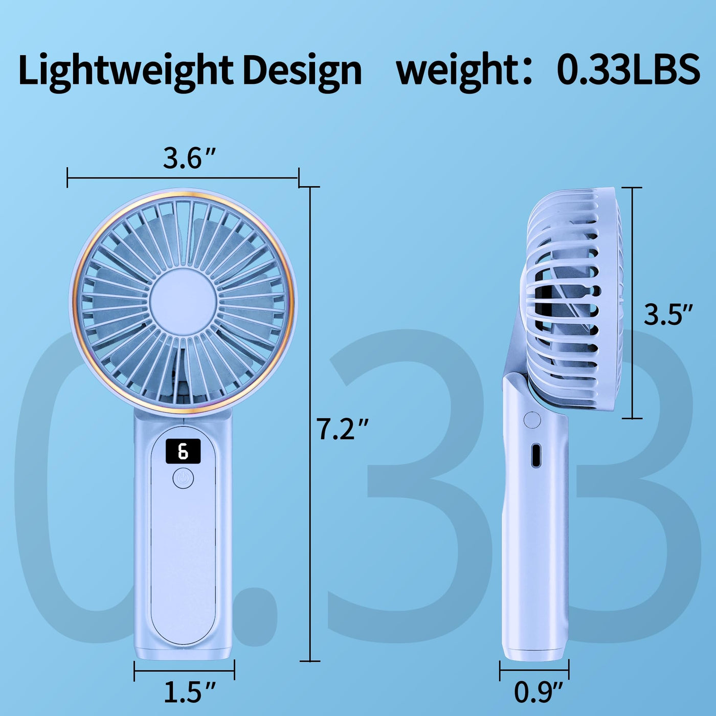 Handheld Fan, Portable Fan, 4000Mah Rechargeable Personal Fan, 180 Foldable Mini Desk Fan With 6 Wind Speed, Lcd Digital Display