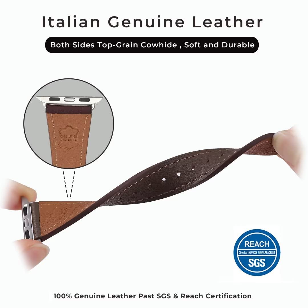 Handodo Women Slim Leather Band Compatible With Apple Watch Series 9/8/7/6/5/4/3/2/1/Se Top Grain Calfskin Leather Replacement