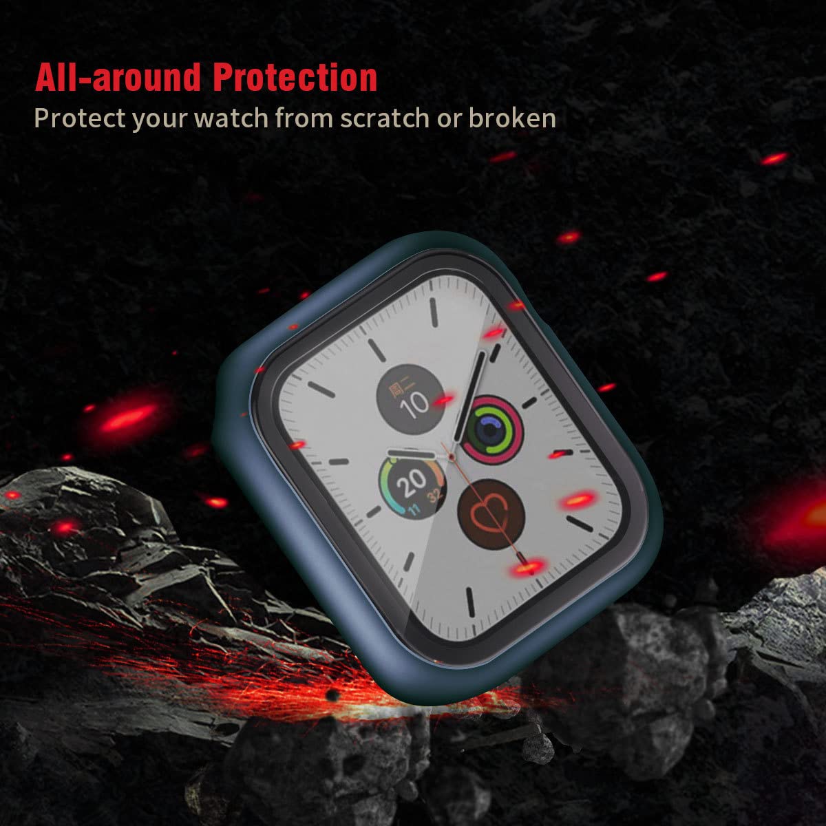 Q: How does the tempered glass screen protector enhance the durability of the watch?A: The integrated tempered glass screen protector provides full front coverage, protecting your Apple Watch from scratches, scuffs, and impacts while maintaining the original touch sensitivity.