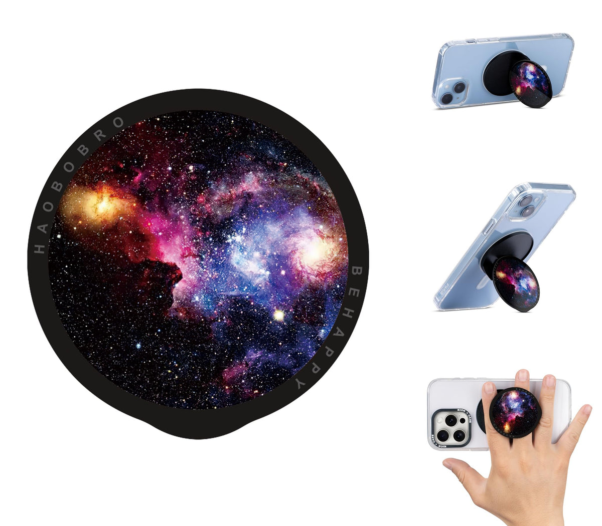Haobobro Magnetic Phone Stand Holder And Phone Grip Compatible With Mag Safe This Magnetic Phone Holder Is Made Of Premium Material And Has A Comfortable Grip, So You Can Hold Your Device At Various Angles While Taking Selfies, Scrolling Through Social Media, Or Doing A Video Call; It Is Easy To Operate Your Phone With One Hand, As It Holds The Phone Firmly And Reduces The Risk Of Accidentally Dropping It. Snap, Grip, Or Stand Effortless Easy, Simply Snap The Grip Stand Onto The Back Of Your Mag Safe Compatible Phone And Never Let Go Of Your Device. Whether You Want To Watch A Video Or Record A Live Stream, Flip The Grip To Turn It Into A 45 (Landscape & Portrait) Or 90 (Landscape) Stand Or Comfortable Viewing On Any Flat Surface. Hold It Effortlessly Easily Hold Your Phone And Grip Stand Together With Just One Hand (Or Slide It Into Your Pocket) Thanks To Its 5.4Mm Slim Design. With The High Magnetic Strength, Your Phone Can Stay Securely Attached Without Accidental Drops. Stylize Your Grip Stylize Your Grip Stand By Selecting From A Variety Of Prints That Suit Your Style. Package Contents 1*Haobobro Snap-On Magnetic Phone Grip Stand 6*Month Limited Warranty