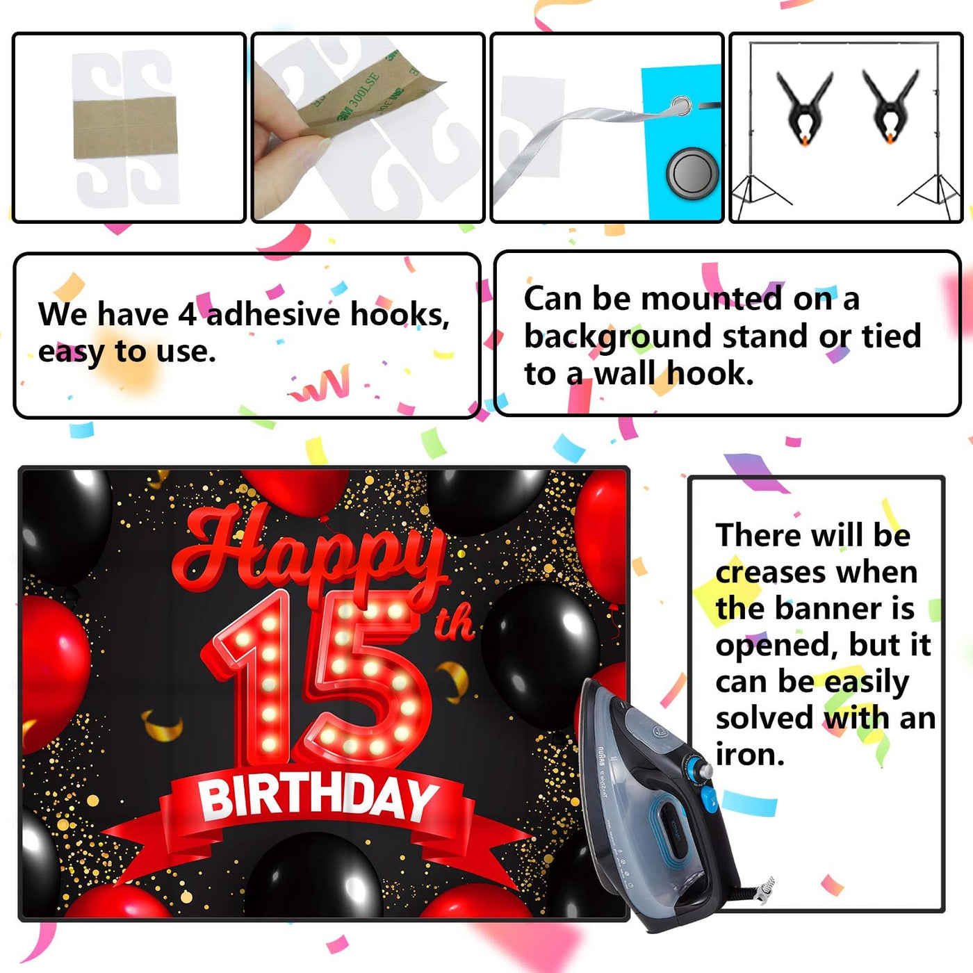 Happy 15Th Birthday Red And Black Banner Backdrop Decorations Balloons Theme Decor For Girls Women Princess 15 Years Old Birthda