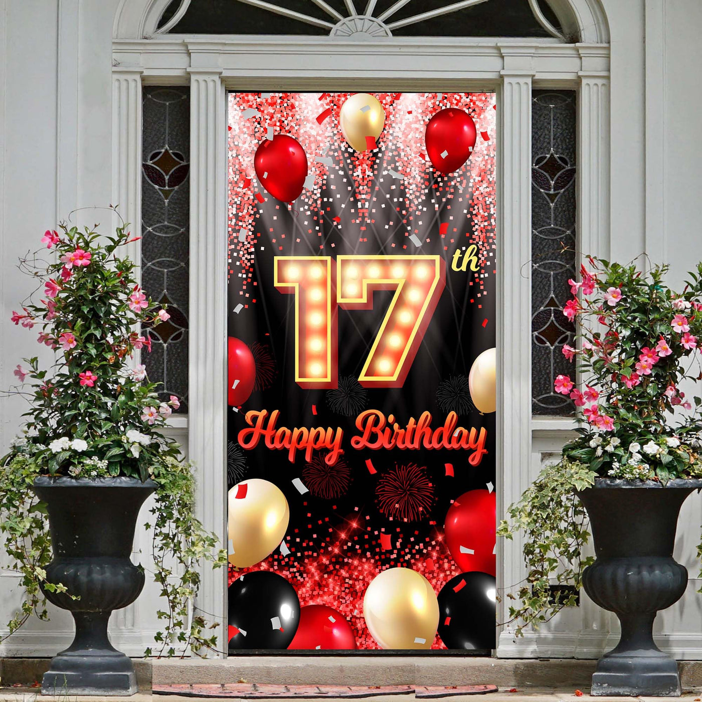 Q: What are the dimensions of the Happy 17th Birthday Backdrop Banner?A: The banner measures approximately 900mm x 1850mm, which is equivalent to 35.4 inches x 72.8 inches, making it large enough to serve as an impressive backdrop for your birthday celebration.