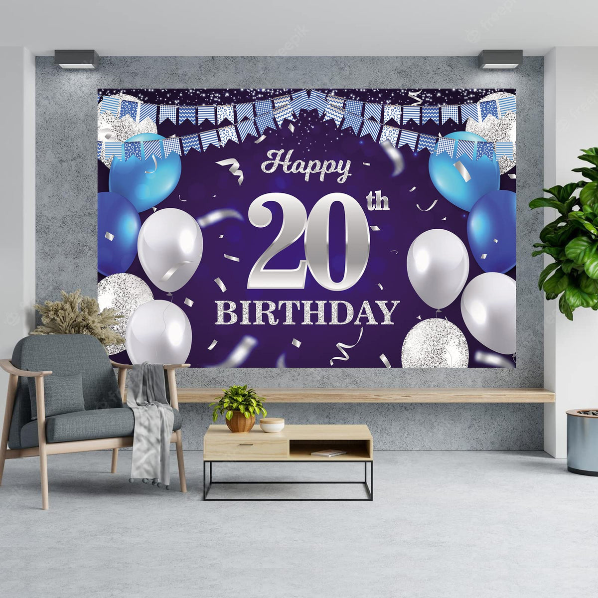 Q: What are the dimensions of the banner?A: The dimensions of the Happy 20th Birthday Banner are 71 inches in width and 47 inches in height, making it large enough to serve as a stunning backdrop for your party.