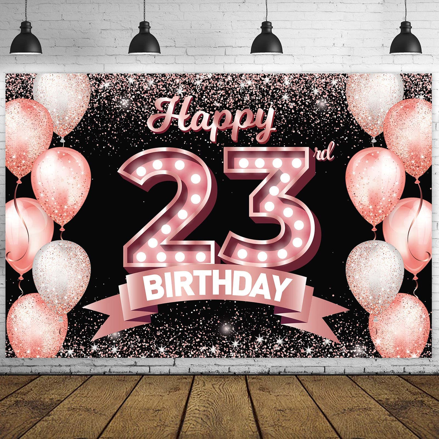 Happy 23Rd Birthday Rose Gold Banner Backdrop Cheers To 23 Years Old Confetti Balloons Theme Decor Decorations For Women 23 Year