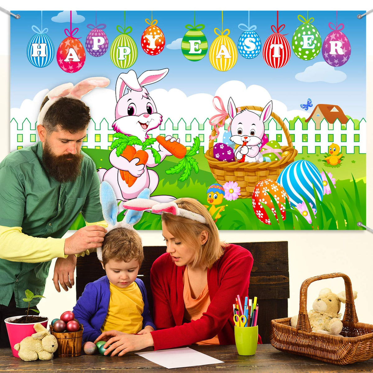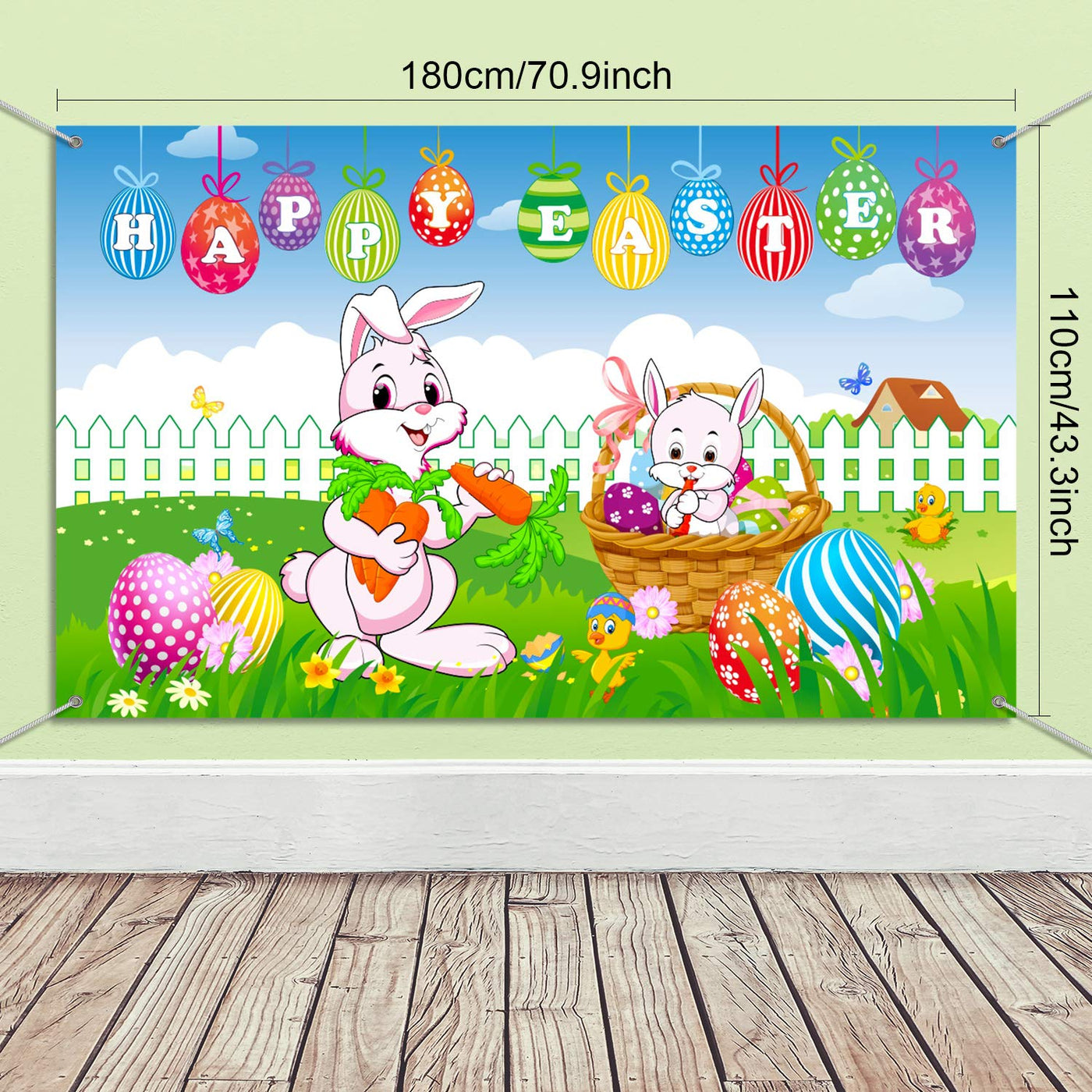 Happy Easter Backdrop Banner, Spring Easter Rabbit Colorful Eggs And Chick Sign Green Grass Yard Photo Background Bunny Photography For Easter Party Decoration, Easter Egg Hunt Game Supplies Suitable Size And Color: The Happy Easter Backdrop Measures Approx. 180 X 110 Cm/ 70.9 X 43.3 Inch. It Has Digital Print With Eye-Catching Details And Lifelike Colors. Let Your Decorated Place Attract More Attention. Meaningful Design: The Backdrop Is Designed With Easter Elements, Such As Happy Easter Sign And Patterns Of Colorful Eggs, Chick, Bunny And So On. These Elements Can Create A Better Festive Atmosphere For Holding Easter Party. Features: It Is Made Of Durable Polyester Fabric, Light Weight; It Can Be Folded, Easy To Carry And Washable. Specification: Size: Approx. 180 X 110 Cm/ 70.9 X 43.3 Inch Material: Polyester Fabric Package Includes: 1 X Easter Egg Hunt Party Banner 1 X 20 Ft/ 6 M Rope Notice: Please Wash Them With Your Hands And Dry Them In The Ventilated Place. In Addition, There May Be Some Wrinkles In The Banners; So Please Iron Them Gently. Please Allow 1-3 Cm Error Due To Manual Measurement. Winding Risk May Exist, Please Keep Away From Children.