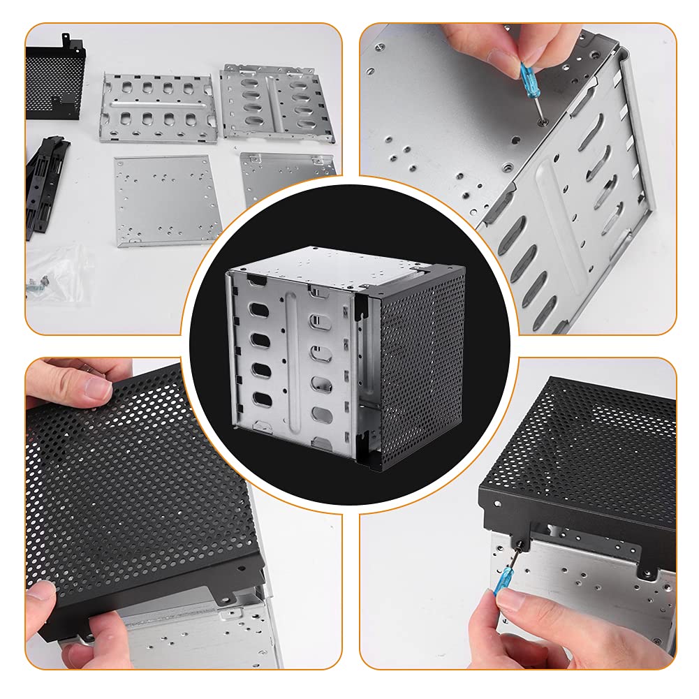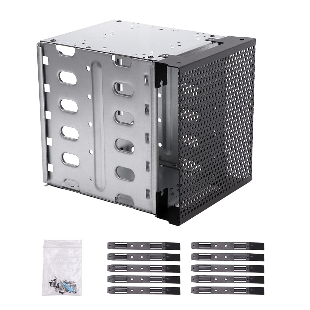 Hard Drive Cage,Galvanized Steel Plate + Abs Plastic Cage Hard Drive Tray Rack With Fan Space,Adapter Rack Bracket For Computer Sata 5.25In To 5X 3.5