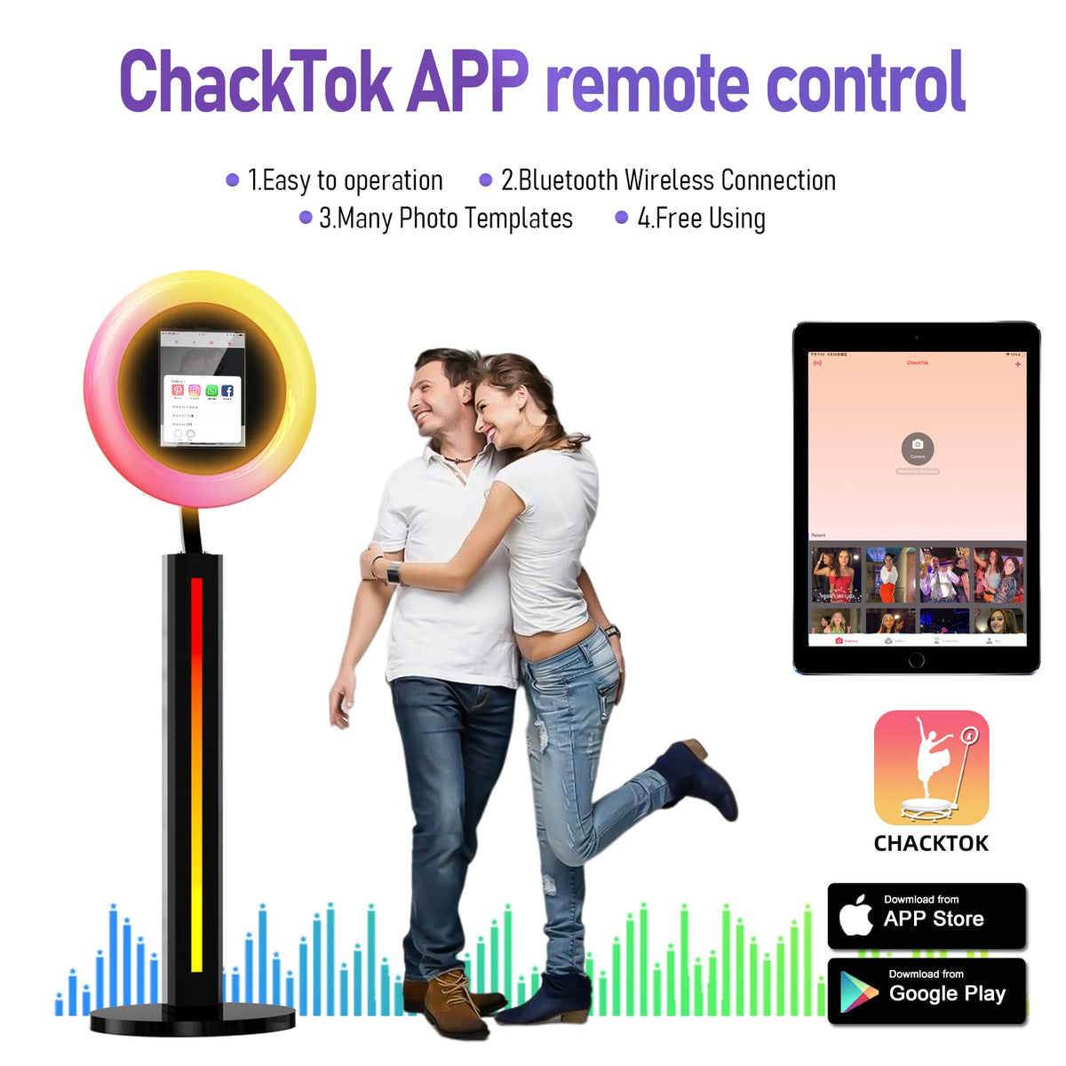 Q: How does the RGB lighting work in the photo booth?A: The RGB lighting in the HARZHI Portable Photo Booth can be controlled via an app or remote control. You can adjust the color modes and brightness levels, and the lighting effects can even synchronize with music to enhance your party atmosphere.