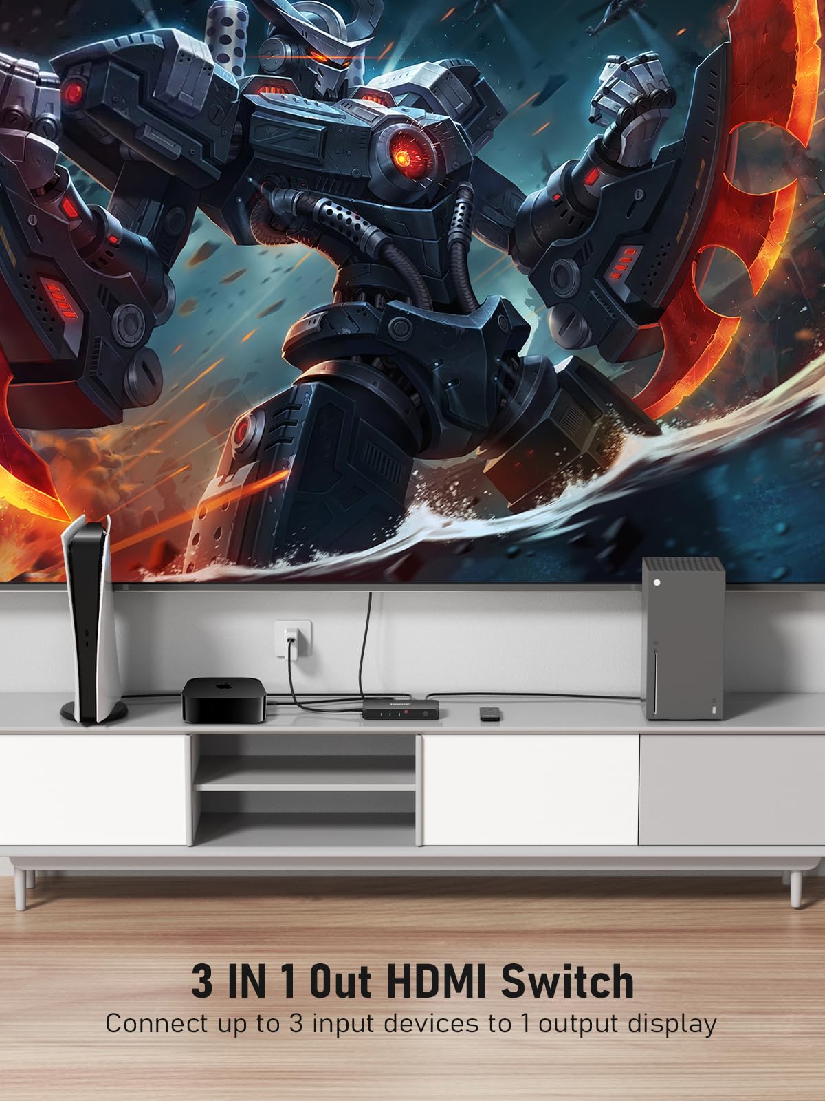 Hdmi Splitter 4K, Lemorele Hdmi Switch 3 In 1 Out With Remote Control, Hdmi Switcher With 1M Usb C Charging Cable, 4K @ 30Hz Hdm