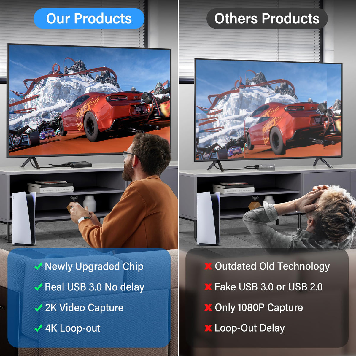 Q: What is the advantage of using USB 3.0 with this capture card?A: The USB 3.0 interface provides fast transmission technology, allowing simultaneous capture of high-quality video and audio with low latency. This is especially beneficial for streaming media, video conferencing, and game live streaming.