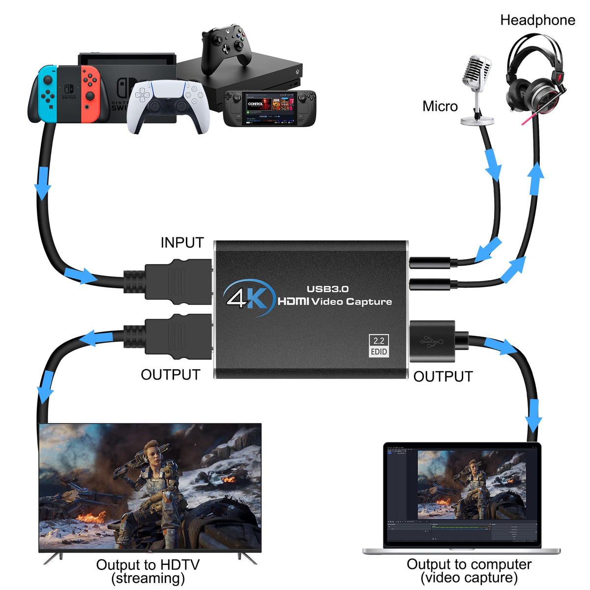 Hdmi Video Capture Card For Switch 4K External Capture Card For Streaming With Usb 3.0 And 2K 30Fps Game Capture For Nintendo
