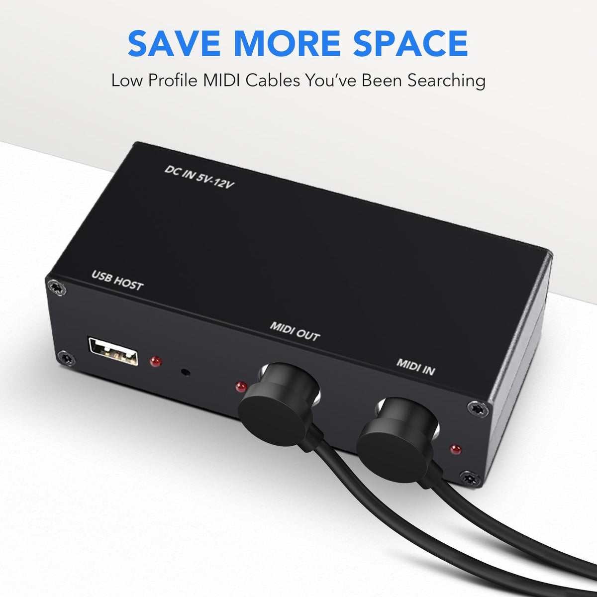 Q: What advantages does the low profile design of the MIDI cable offer?A: The low profile design of the Heams MIDI Cable features mirrored angle ends and a super thin plug, allowing for minimal space usage. This design helps keep your setup organized and tidy, making it ideal for crowded pedal boards.