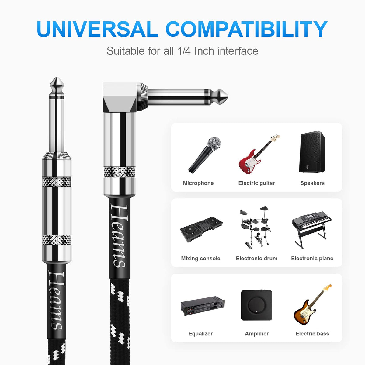Q: Is the Heams 20 FT Guitar Cable compatible with all electric instruments?A: Yes, the Heams 20 FT Guitar Cable is suitable for a variety of instruments including electric guitars, bass guitars, microphones, and amplifiers, making it a versatile choice for any musician.