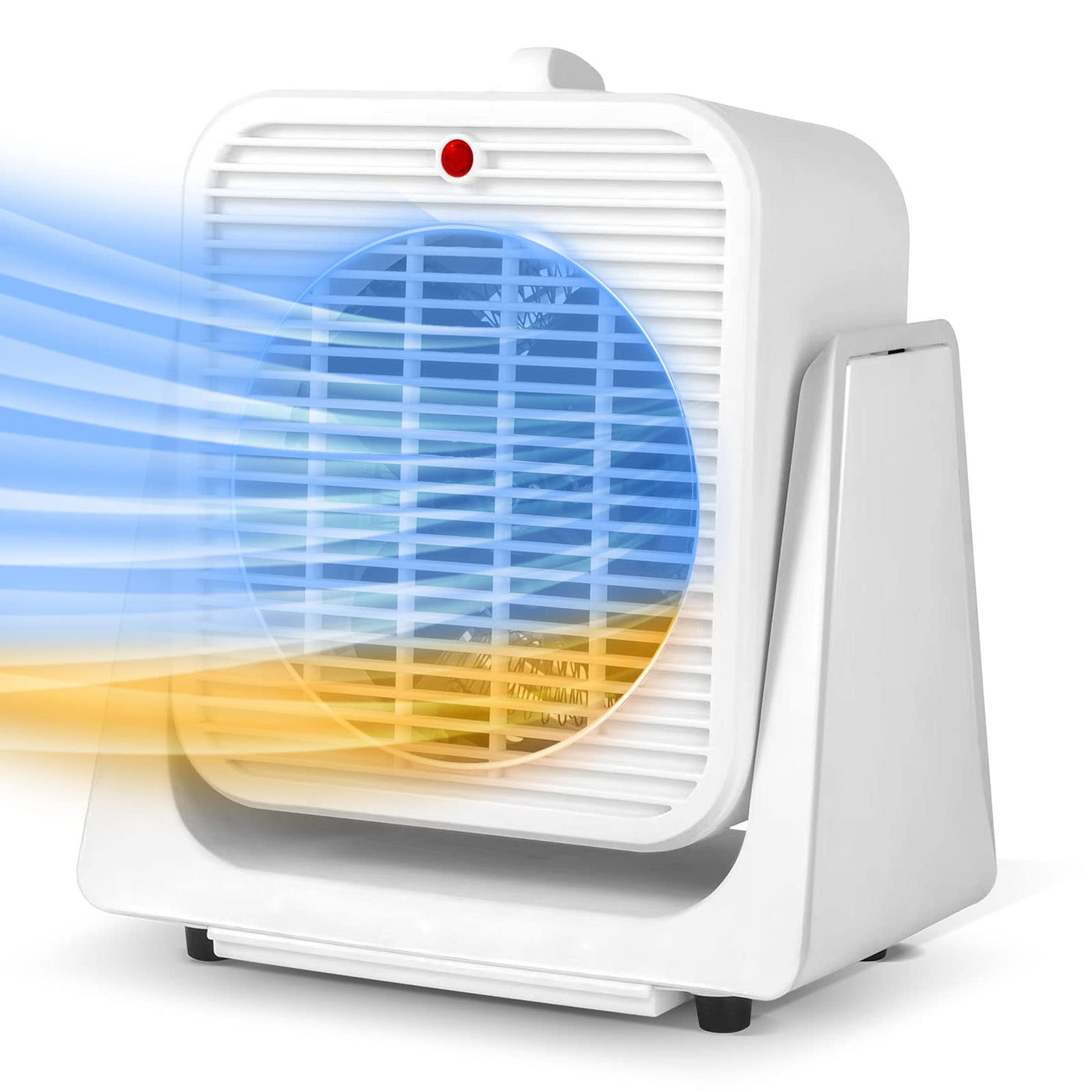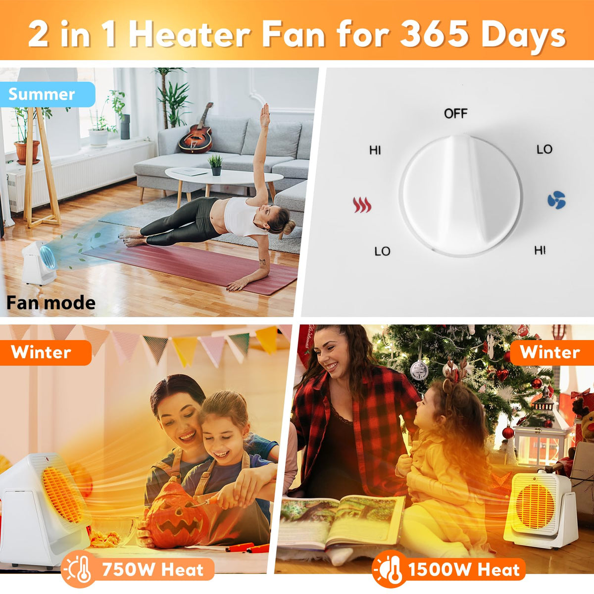 Heater And Fan Combo For Desk, 2 In 1 Heater Fan W/Fast Heating & Fan Modes, 45 Adjustable Angle, Overheated & Tip Over Protecti