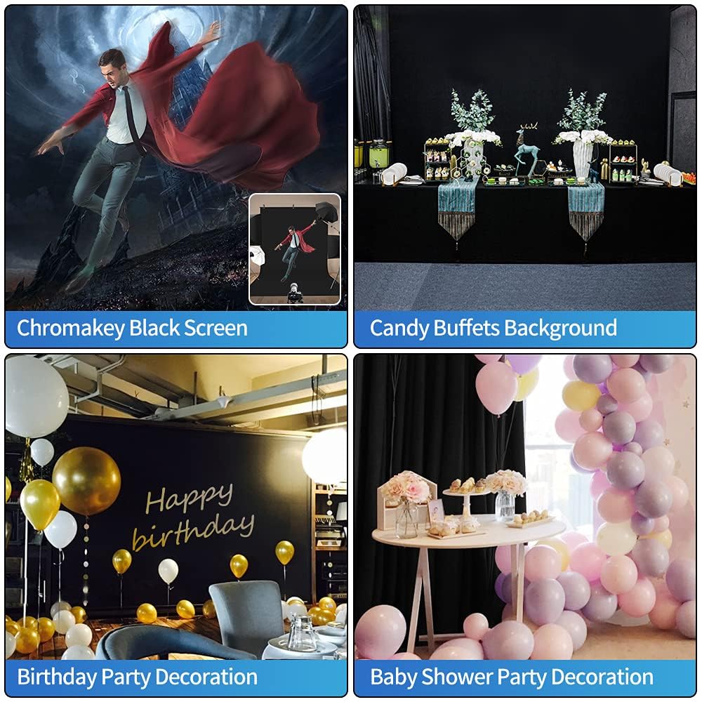 Product Name:Black Backdrop For Photography Brand:Hemmotop Color:Black Size:8 X 10 Feet (243X304 Cm) Features: 1.With Rod Pocket Design,It Is Convenient To Be Draped Or Hung. 2.If The Black Backdrop Gets Dirty,You Can Wash It By Hand Or Washing Machine. 3.After Washing,Smooth The Black Backdrop,If There Are Wrinkles,Please Iron It With Steam Iron. 4.With Good Lock-Stitching Along All Edges To Prevent Tears. 5.Single Piece Seamless Design. Note: 1.Folding The Black Backdrop Will Make It Wrinkle,Please Iron The Surface With Low-Temperature Iron Before Use. 2.We Do Not Recommend Using It As A Curtain. Package Contents: Black Backdropx1