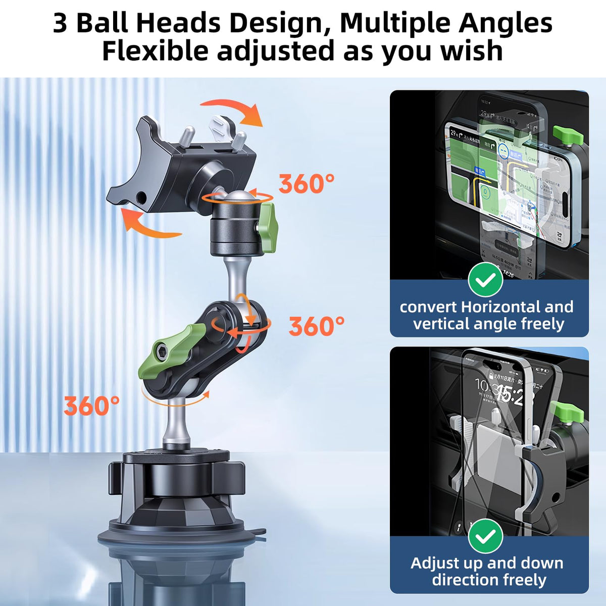 Hemmotop Suction Cup Car Phone Mount, 12 In Heavy Duty Metal Cell Phone Holder For Windshield, 360 Rotation Vacuum Magic Arm For