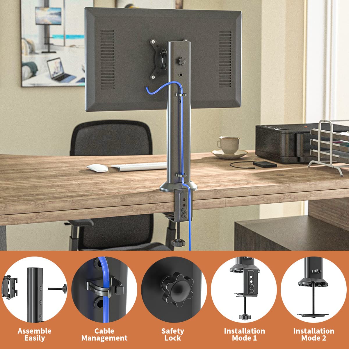 Hemudu Single Desk Monitor Arm Mount Stand Fit For 13 Inch To 34 Inch Flat Curved Computer Screen With Swivel, Height Adjustable