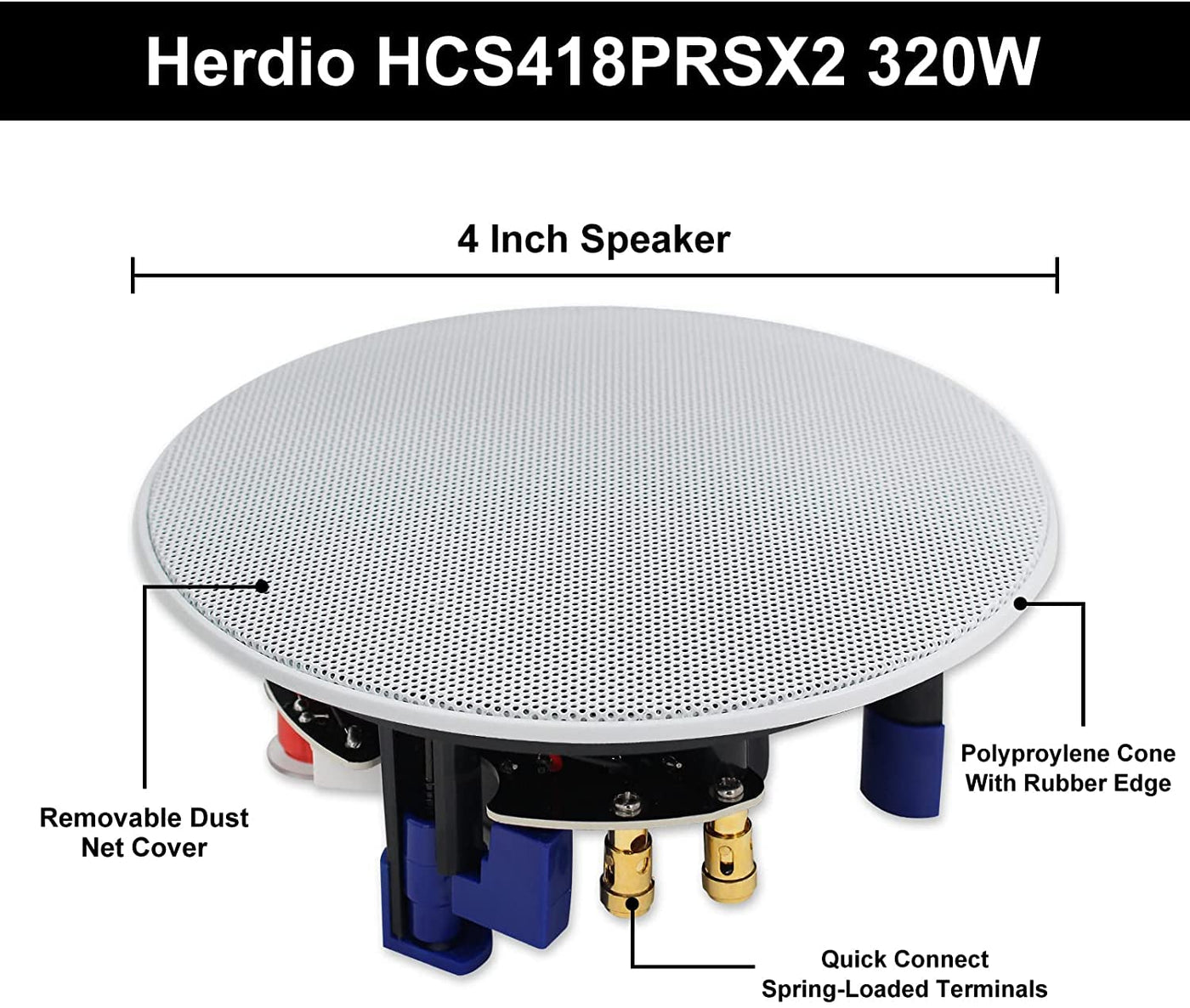 Herdio 320 Watts 2 Way Flush Mount Ceiling Speakers 4 Inches For Bathroom, Kitchen,Living Room,Office 4 Speakers
