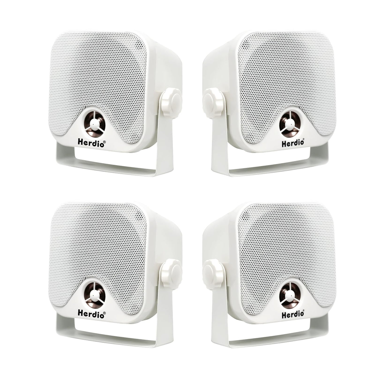 Herdio 4 Inches Heavy Duty Waterproof Boat Marine Box Outdoor Speakers Surface Mounted For Skid Steer Atv Utv Rzr Rv Golf Cart Tractor Powersports Boat Truck Jeep(4 White Speakers)