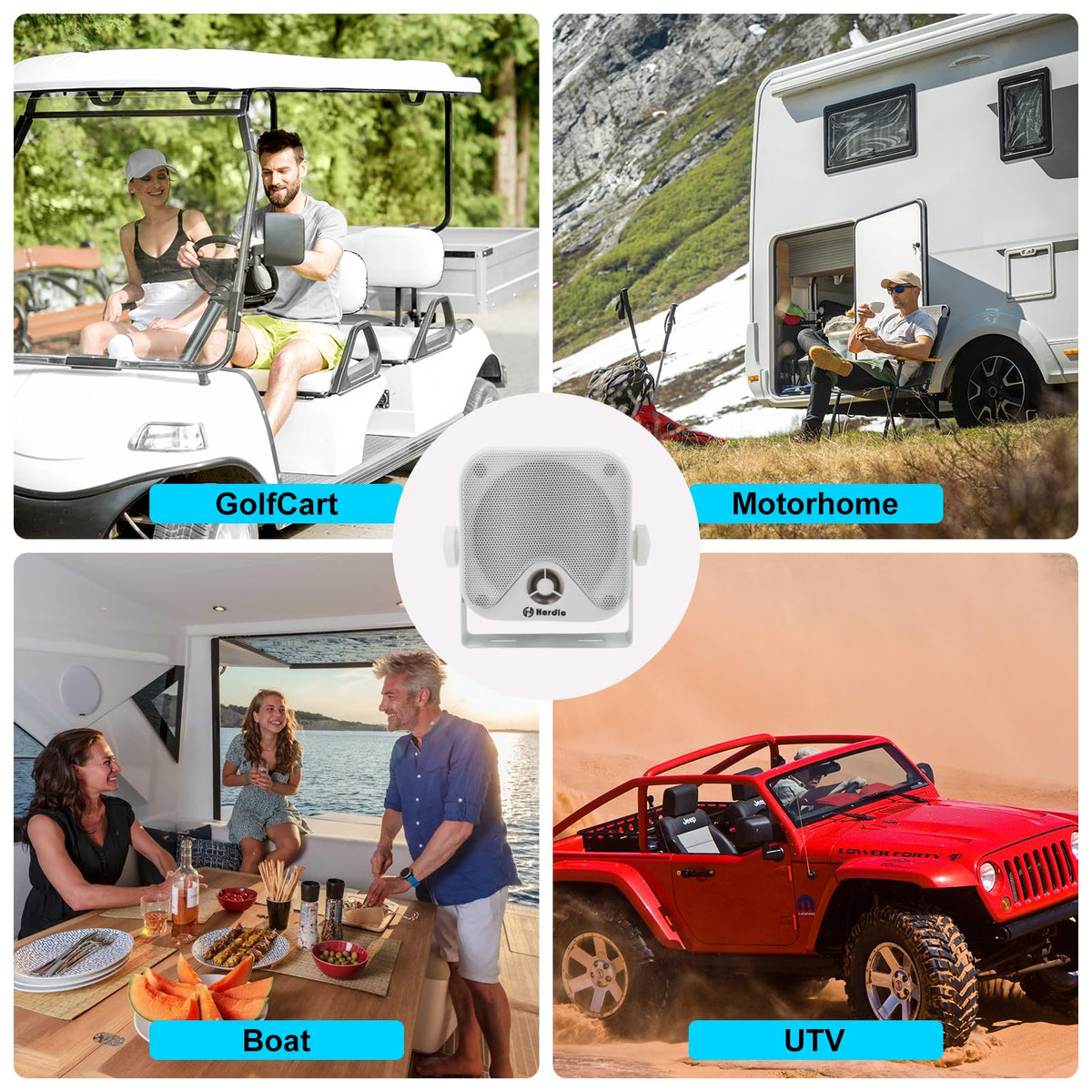 Q: Can I use these speakers in different vehicles?A: Yes, these waterproof marine speakers are versatile and compatible with a wide range of vehicles, including boats, RVs, UTVs, ATVs, trucks, golf carts, and motorcycles, making them a great addition to your outdoor adventures.