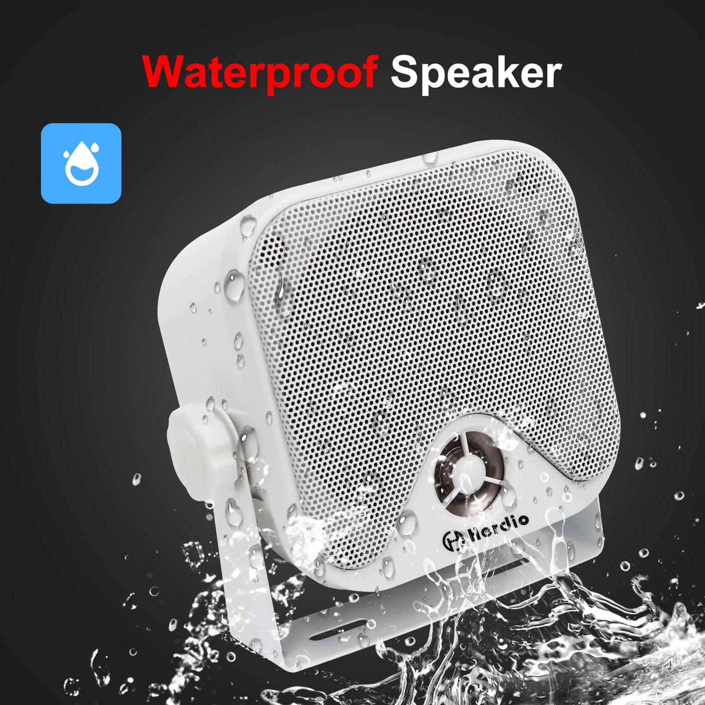 Q: What makes the Herdio 4-inch marine speakers waterproof?A: The Herdio 4-inch marine speakers feature a marine-grade waterproof construction with an IP66 rating, ensuring they can withstand heavy water splashes and various outdoor conditions, making them ideal for use on boats, ATVs, UTVs, and more.