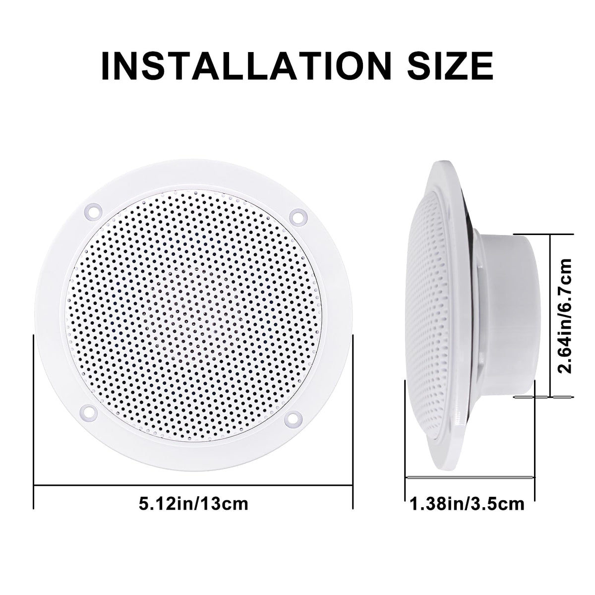 Marine Grade And Functions: The Speakers With High Marine Grade Of Ip66 Also Have Anti-Salt,Fog,Uv Protection,High Temperature Resistant Functions . The Overall Spray Hull Dedicated Coating , The Whole Unit Sealed, And It Can Also Play Great Soundquality In Harsh Enviroment . Speacial Materials: The Herdio Hms5104W Speakers Are Designed For Universal Veichels And Boats.The Materials We Use As Polypropylene Cone Can Accurately Reproduces Sound, And The Molded Abs Plastic Basket Keeps Your Sound Distortion-Free. Concise Design And Best Sound Quality: Built In High Definition Digital Stereo Effect, To Ensure Syllable Clear ,Into A Sense Of Strong ,Sample Appearance Design,But Bass Shocking You. Compact And Powerful: The Speakers Is Compact In Size, The Maximum Power Handling Is 160 Watts A Pair , Frequency Response 100Hz-18Khz. Tiny Size For Easy Installation: The 4 Marine Flush Mounted Speakers Comes With Mounting Screws And Bolts Allows You Easily Install Them Into A Place Where Limited Space Available Only. Product Dimensions 4.88''(124Mm) (W) X 3.8''(96.5Mm) (H) X1.37''(35Mm) (D) Idea For : Boats, Yacht, Gauge, Fishing Boats, Pontoon, Motorcycles, Motorbikes, Cars, Atv, Utv, Suv, Rv, Golf Carts. Spa Rooms, Swimming Pools ,Campers, Cubby Cabins, Rzr, Harvesters, Excavators, Jet Skis, Hot Tubtruck.