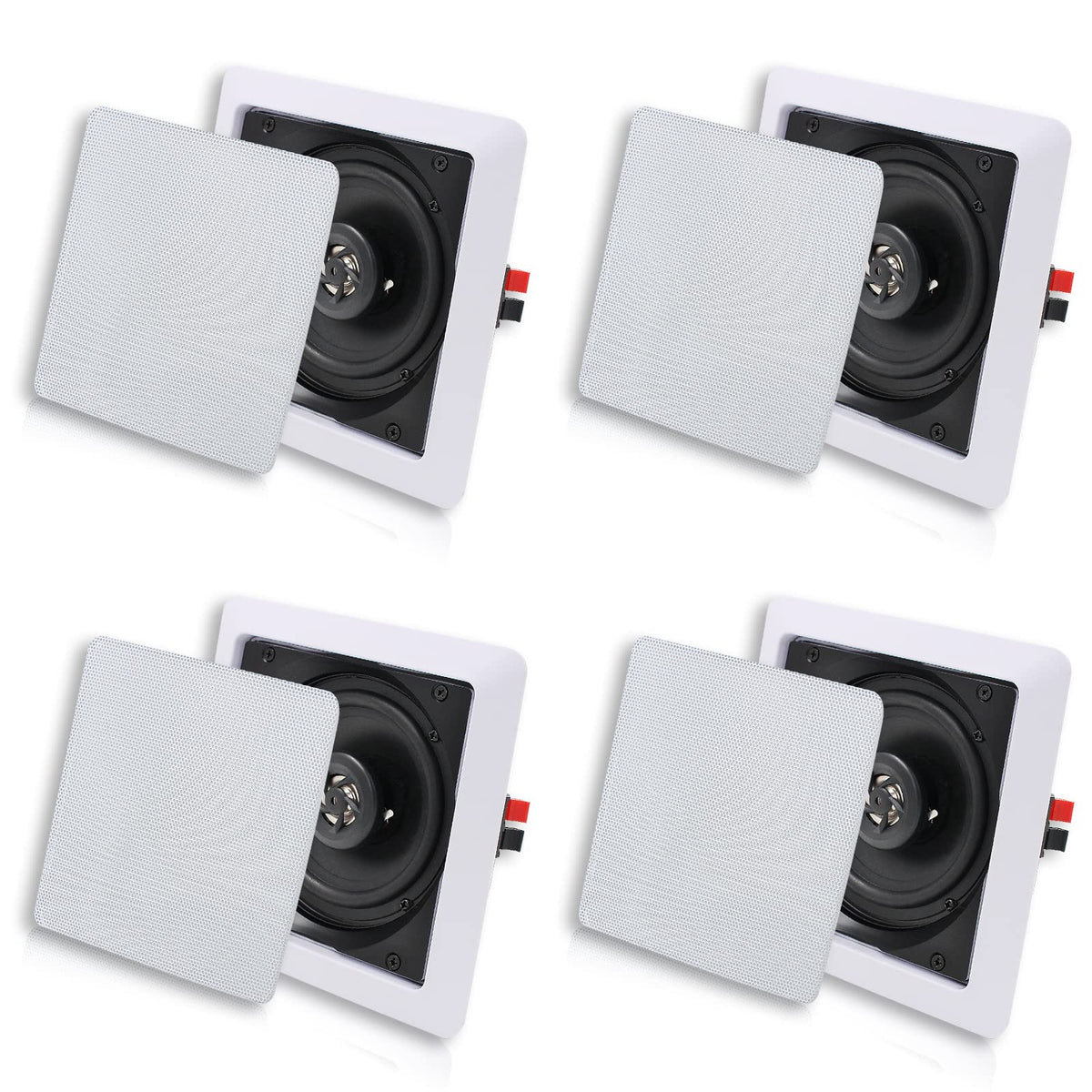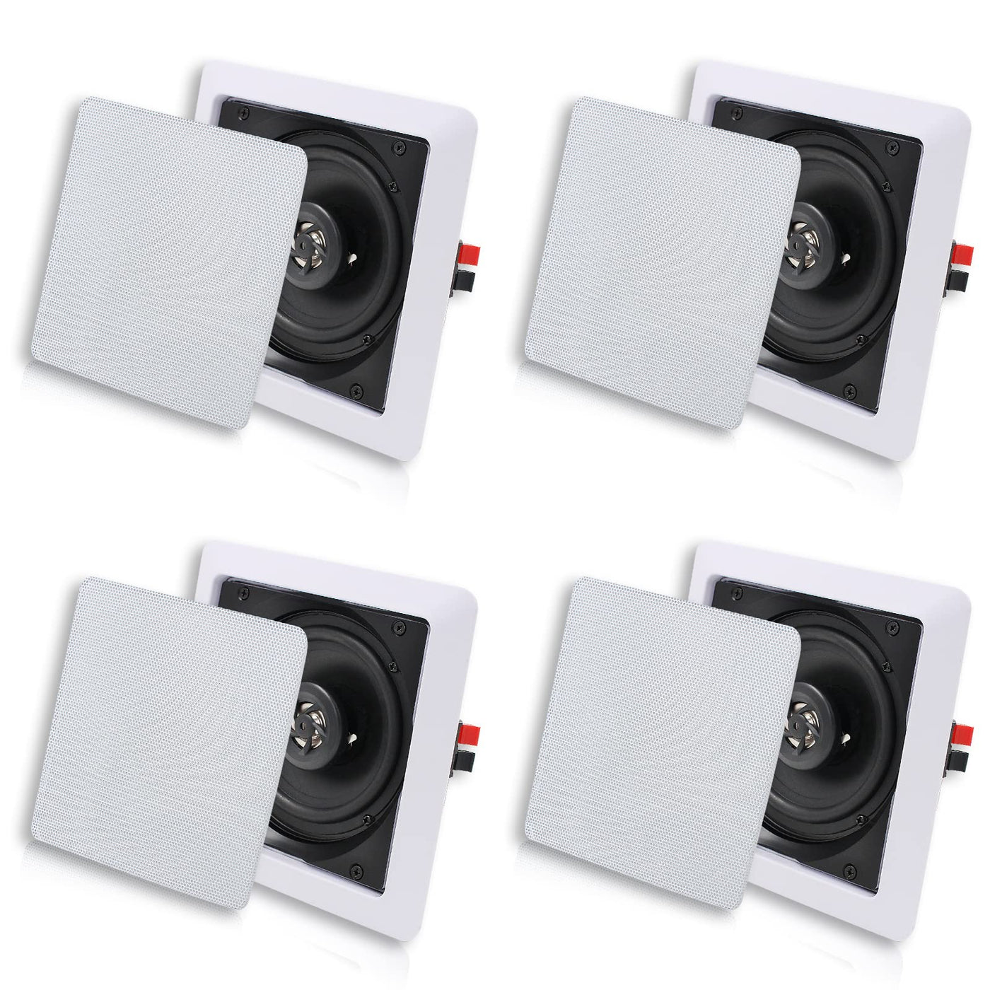5.25'' Indoor Bluetooth Ceiling Speakers With Subwoofer, 2-Way, Flush Mount, 2 Pairs, White Technical Specifications : Outside Facial Diameter:7.28*7.28''(185*185Mm) Mounting Hole Diameter:5.87*5.87''(149*149Mm) Mounting Depth:2.83''(72Mm) Impedance:8 Ohms Frequency Response:80Hz-20Khz Power Handling(Max):160Watt Magnet Material: 8 Oz Spl(1Watt / 1Meter):89Db Mounts Flush On Walls Or Ceilings Perfect For Custom Installations.Herdio Wall Speakers Bluetooth Wireless System Delivers Stereo Sound To Any Room In Your Home Or Office Without Cluttering Floor Space. This 5.25'' Speakers Set Can Be Used For In-Wall And In-Ceiling Applications As They Mount Flush For A Clean Look. Perfect For Custom Installations, The Series Speakers Feature Impressive Power Handling Capability, High-Temperature Voice Coils And High-Efficiency Response Rates - All To Produce More Full And Rich Sound. Convenient Speaker Terminals Allow For Quick And Hassle-Free Speaker Wire Connection.