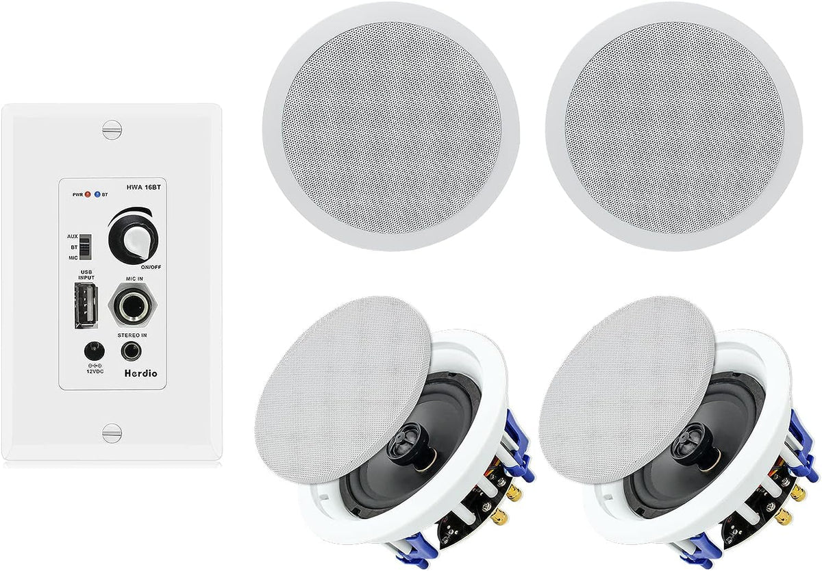 Herdio Home Audio Package In Wall Bluetooth Amplifier Volume Control Receiver Wall Plate With 6.5 Inch 640W Ceiling Speakers(2 P