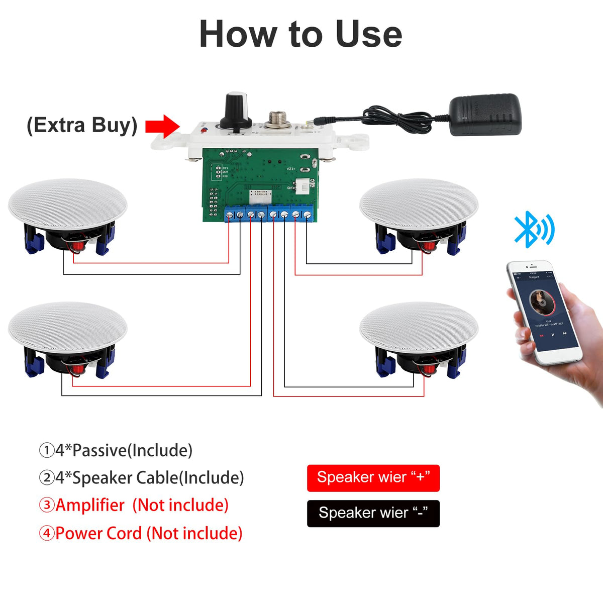 Herdio In Ceiling Speakers, 6.5 Inch 600 Watts Flush Mount Passive Wired Speakers For Bathroom, Kitchen,Living Room,Office(4 Spe