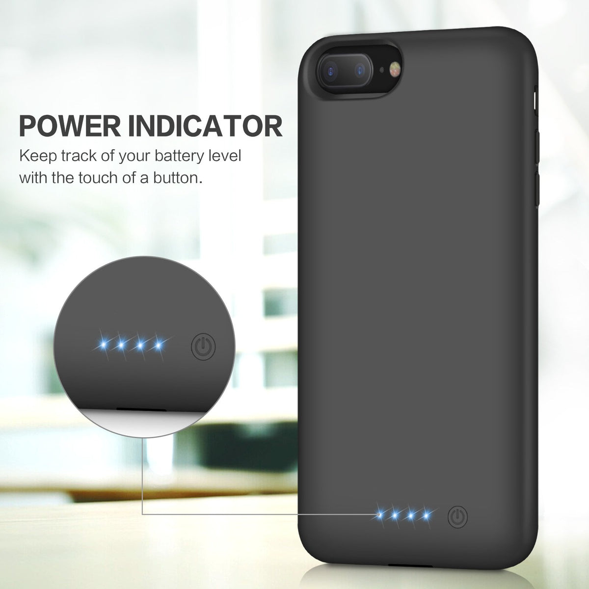 ??Features:1. Compatible With Iphone 7Plus/8Plus (Not Works On Others )2. 4 Led Power Indicators Shows Power Status Of External Battery Case(25%--50%--75%--100%).3. On/Off Button For Optional Power Output Control,Iphone 7Plus/8Plus Battery Use Grade A+ Batteries With Ce And Rohs Certification.4. Full Protection To Corners And Sides, Protecting Your Phone From Drops And Impacts. 5. Smart Battery Case,The Battery Case Intelligently Stopping Charging When Your Phone Is 100%.Protecting Your Phone Battery.??How To Charge Your Phone ?[1]. Just Fully Put Your Iphone 8Plus/7Plus Into The Upgraded Battery Case.[2]When You Charging The Phone , Customer Need To Carefully And Gently Slide The Iphone All The Way To The Bottom Section Until The Connector Is Full Inserted Into Your Phone, If The Phonecannot Be Powered , Need To Install It Again And Be Sure To Check If The Charger Plug Has Been Properly Connected.[3].Please Charge The Battery Case With The Apple Original Charger Cable.[4]. Pressing The Power Button On The Bottom Of The Iphone 7Plus / 8Plus Battery Case, The Battery Case Will Start Charge Your Iphone.[5]. Pressing The Power Button Of The Iphone 7 Plus / 8 Plus Battery Case Again, The Case Will Stop Charging.??Specification:Capacity: 8500Mahinput: Dc 5V/1000Maoutput: Dc5V/1000Macharging Power Level: 1 Light = 25%, 2 Lights = 50%, 3 Lights = 75%, 4 Lights = 100%??Customer Must Know:1. This Upgraded Battery Case Is Just Fit For Iphone 7Plus/8Plus, Not Fit For Others.2. Not Compatible With Apple Ear Pods With Connector Or Traditional 3.5Mm Headphones. Only Compatible With Apple Air Pods Or Other Wireless Bluetooth Headphone Accessory.3. The Cable Is Not Included.??Package Included:1 X Upgraded 8500Mah Iphone 7Plus/8Plus External Rechargeable Battery Case Black1 X User Manual