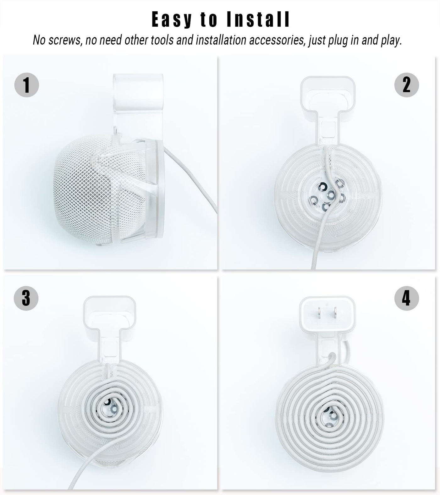 We Are Committed To Creating Products That Help Make Your Home Electronicproducts Simpler And Easier To Use. Heymoontong Designs High-Quality Mounting Products For Voice Assistantsand Other Smart Technology. While Smart Home Products Are Improving Ourpersonal And Professional Lives In Countless Ways, They Also Lead To Unsightlycord Clutter. Heymoontong Aims To Solve That Problem With Easy Mounts That Hidecords And Make Your Smart Home Smarter Than Ever. &Nbsp; Wall Mount Holder Tailored Design For All Colors Of Apple Homepod Mini. The Wall Mount Is Designed For Homepod Min Small Home Speaker In Themarket. The Cord Is Perfectly Hidden On The Back Of The Holder. It Helps Tosave The Counter Space And Keep Everything Neat And Modern. An Essentialaccessory For Homepod Min. &Nbsp; Features: 1?Made By High Quality Acrylicmaterial, Reliable Quality And Never Affect The Audio Output. 2?Utilizes The Original Equipmentpower Adapter. 3?Perfectly Hides The Long Cord Onthe Back Of The Mount. 4?Save Space Of Your Counter Top Ofkitchen, Bathroom And Bedroom. 5?Move Your Homepod Mini To Moreconvenient Locations Without Damaging The Wall. 6?Hang It On The Outlet Given Muchcleaner And Tidier Appearance &Nbsp; Package: 1 * Outlet Wall Mount