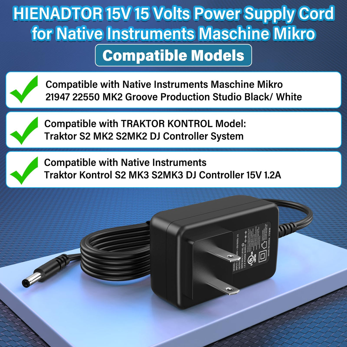 Hienadtor 15V Charger Power Cord Ac Dc Adapter Compatible With Native Instruments Maschine Mikro 21947 22550 Mk2 Studio Ni Trakt