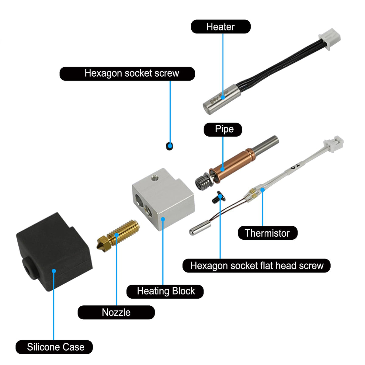 Q: What materials can be used with the HIKUDIY Kobra 3 Hotend?A: The HIKUDIY Kobra 3 Hotend is compatible with various filament types, including 1.75mm PLA, ABS, WOOD, PETG, and TPU. This versatility allows for a wide range of 3D printing projects.