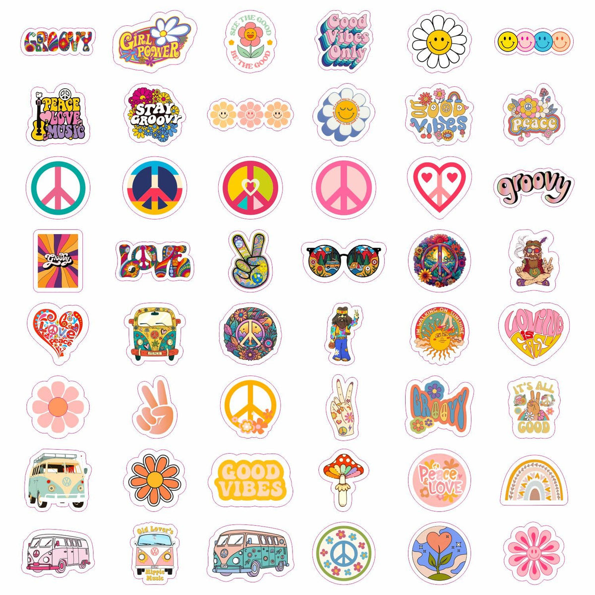 Hippie Stickers, Groovy Stickers For Water Bottle And Laptop Hippie Party Favors & Decorations, Peace And Love Stickers