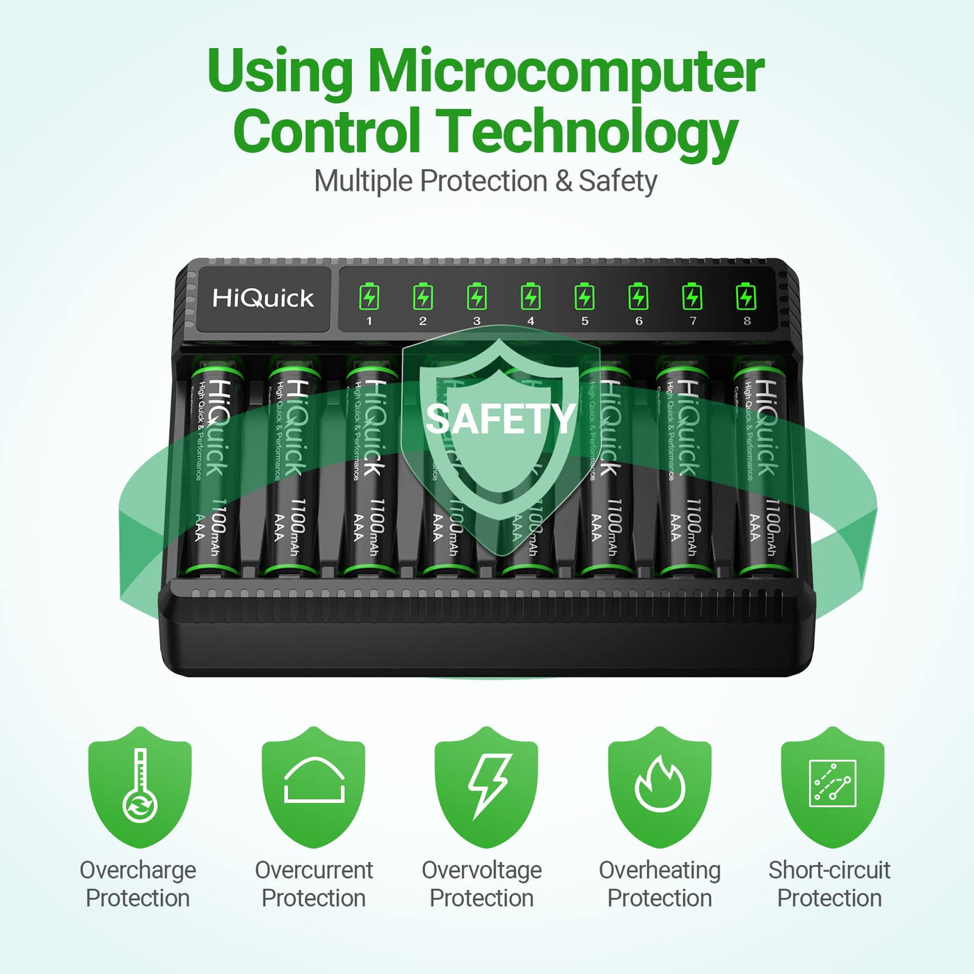 Hiquick Rechargeable Aaa Batteries With 8 Bay Battery Charger,1.2V 1100Mah Low Self Discharge Ni Mh Aaa Batteries 16 Pack With B