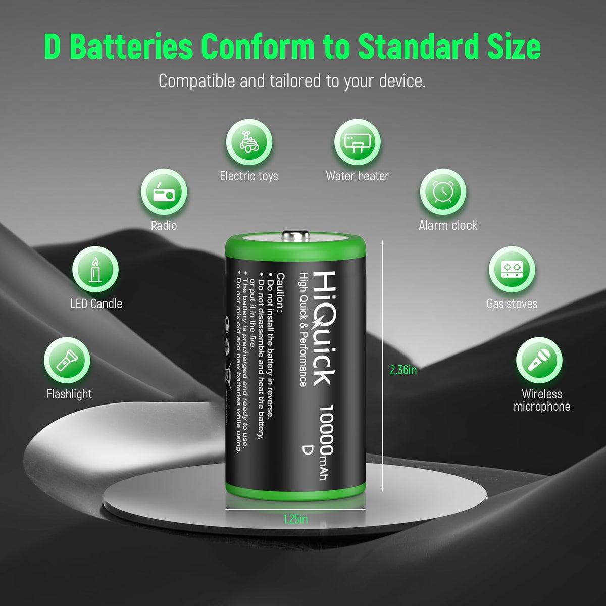 Q: How long can I expect the HiQuick rechargeable D batteries to last?A: The HiQuick rechargeable D batteries have a high capacity of 10000mAh and can be recharged up to 1200 cycles, providing a long-lasting power solution that can save you money in the long run.