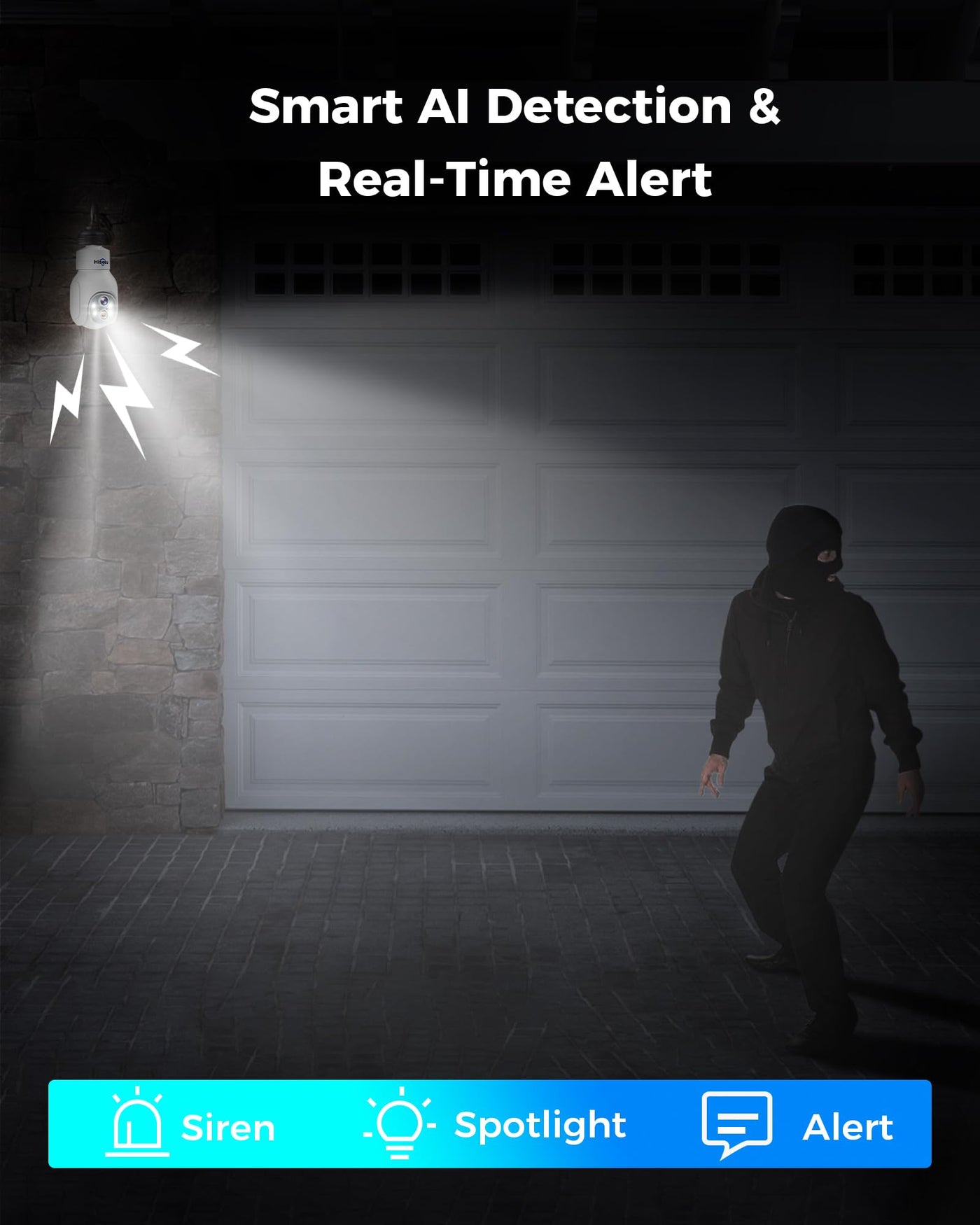 Hiseeu Light Bulb Security Camera Wireless Wifi 2.4Ghz,10X Zoom Ptz Light Socket Security Camera Waterproof, 2 Way Audio, Auto T