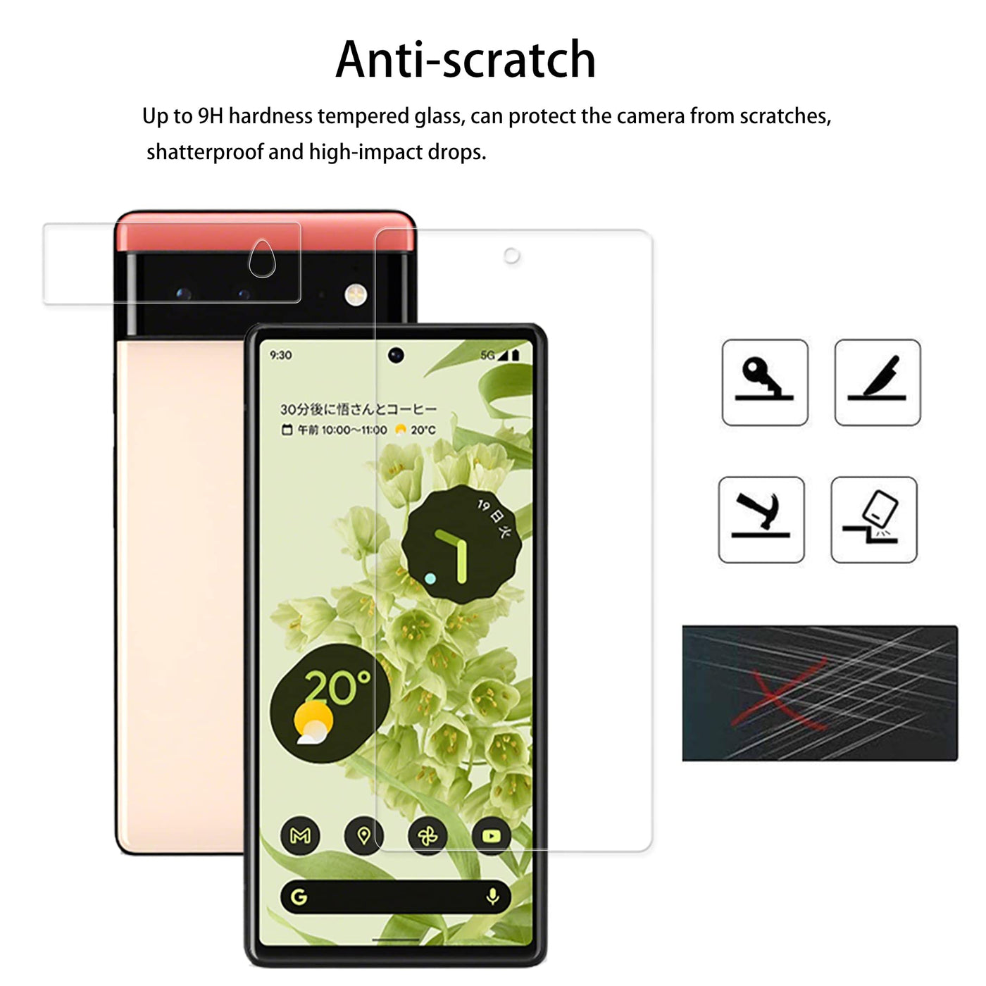 Designed For Google Pixel 6 6.4-Inch.[2+2 Pack] Tempered Glass Screen Protector * 2 Pack & Camera Lens Protector * 2 Pack .[Easy To Install] Comes With Easy Alignment Framel. One-Push Super Easily Installation. | Rounded Edges Glass For Comfort On The Fingers And Hand. | Resists Scratches Up To 9H.Which Forms Features Of Scratch-Resistant And Shatterproof, Protecting Your Screen. | Coated With Hydrophobic And Oleophobic Clear Layer, The Glass Protects Against Sweat And Oil Residue From Fingerprints. | Hd Ultra-Clear Touch-Screen Accurate.Enhancing The Visibility Of The Screen
