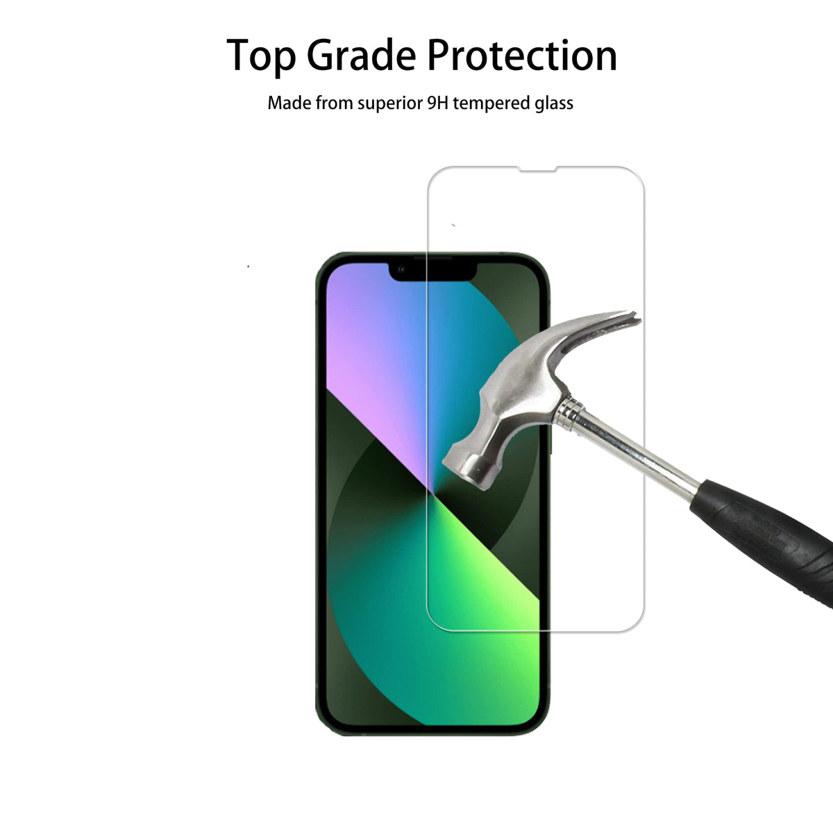 Q: What level of protection does the tempered glass screen protector offer?A: The tempered glass screen protector offers up to 9H hardness, making it highly resistant to scratches and shatter, thus effectively protecting your iPhone 13 screen from potential damage.