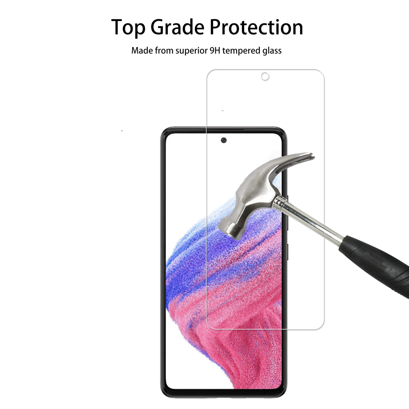 Designed For Samsung Galaxy A53 5G 6.5'' 2022 .[2+2 Pack] Tempered Glass Screen Protector * 2 Pack & Camera Lens Protector * 2 Pack .[Easy To Install] Comes With Easy Alignment Framel. One-Push Super Easily Installation. | Rounded Edges Glass For Comfort On The Fingers And Hand. | Resists Scratches Up To 9H.Which Forms Features Of Scratch-Resistant And Shatterproof, Protecting Your Screen. | Coated With Hydrophobic And Oleophobic Clear Layer, The Glass Protects Against Sweat And Oil Residue From Fingerprints. | Hd Ultra-Clear Touch-Screen Accurate.Enhancing The Visibility Of The Screen