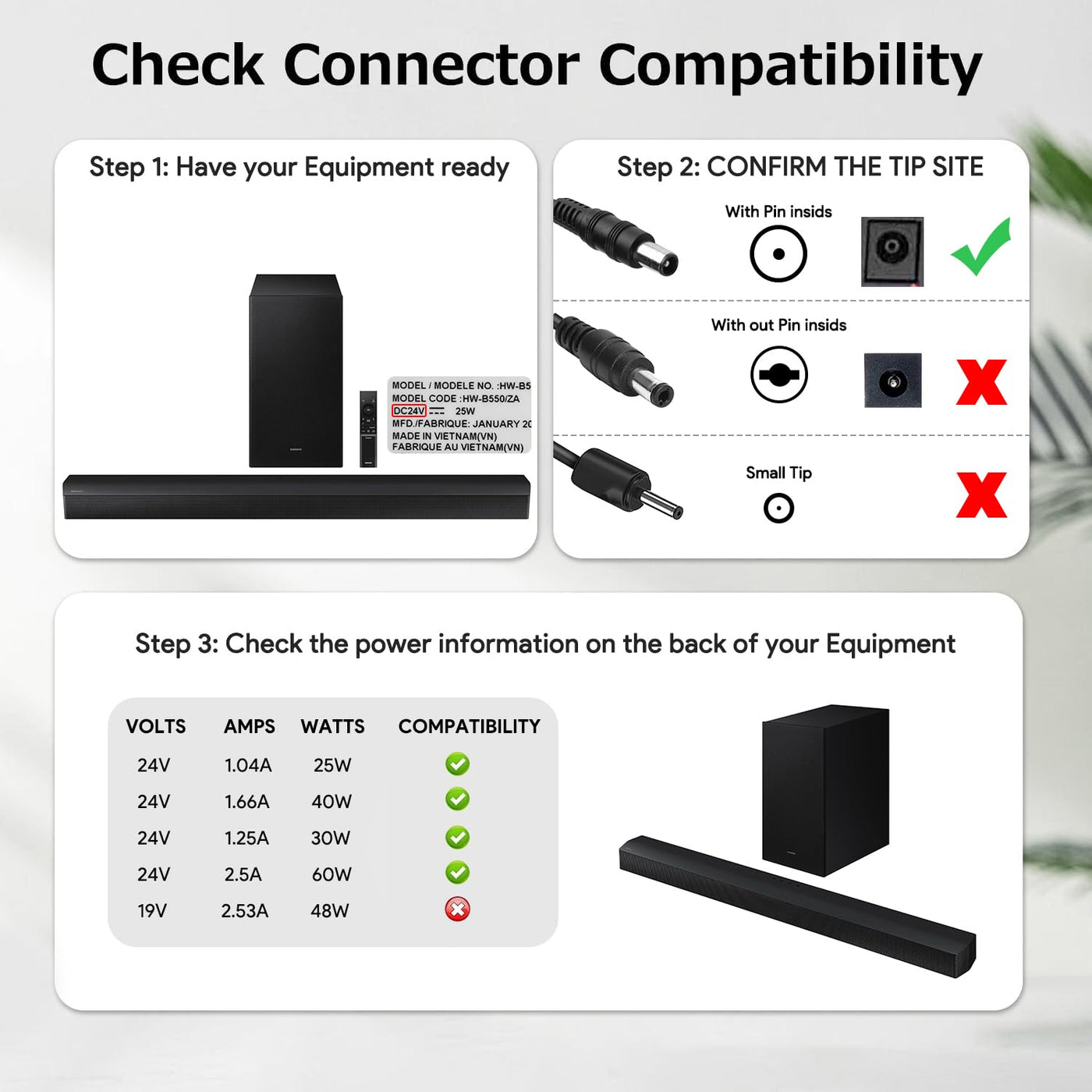 Hky 24V Ac/Dc Adapter Compatible With Samsung T650 Hw-T650/Za Hwt650 Hw-T60M Hw-T60C Hw-T550 Hw-T550/Za Hw-T550/Xy Hw-T550/Zc Hw