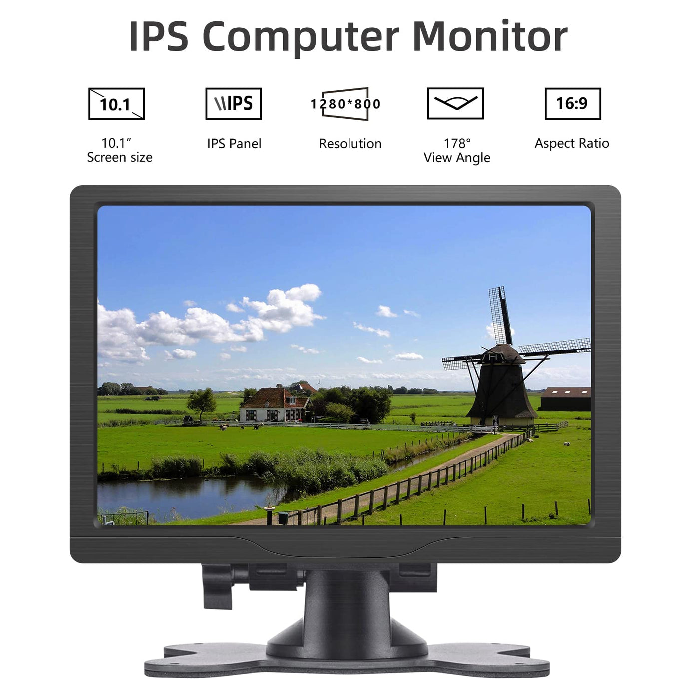 Hmtech 10.1 Inch Hdmi Monitor 1280X800 Portable Hd Vga Monitor Lcd Ips Screen W/Dual-Speaker For Raspberry Pi/Pc/Laptop/Tv/Camera/Gaming
