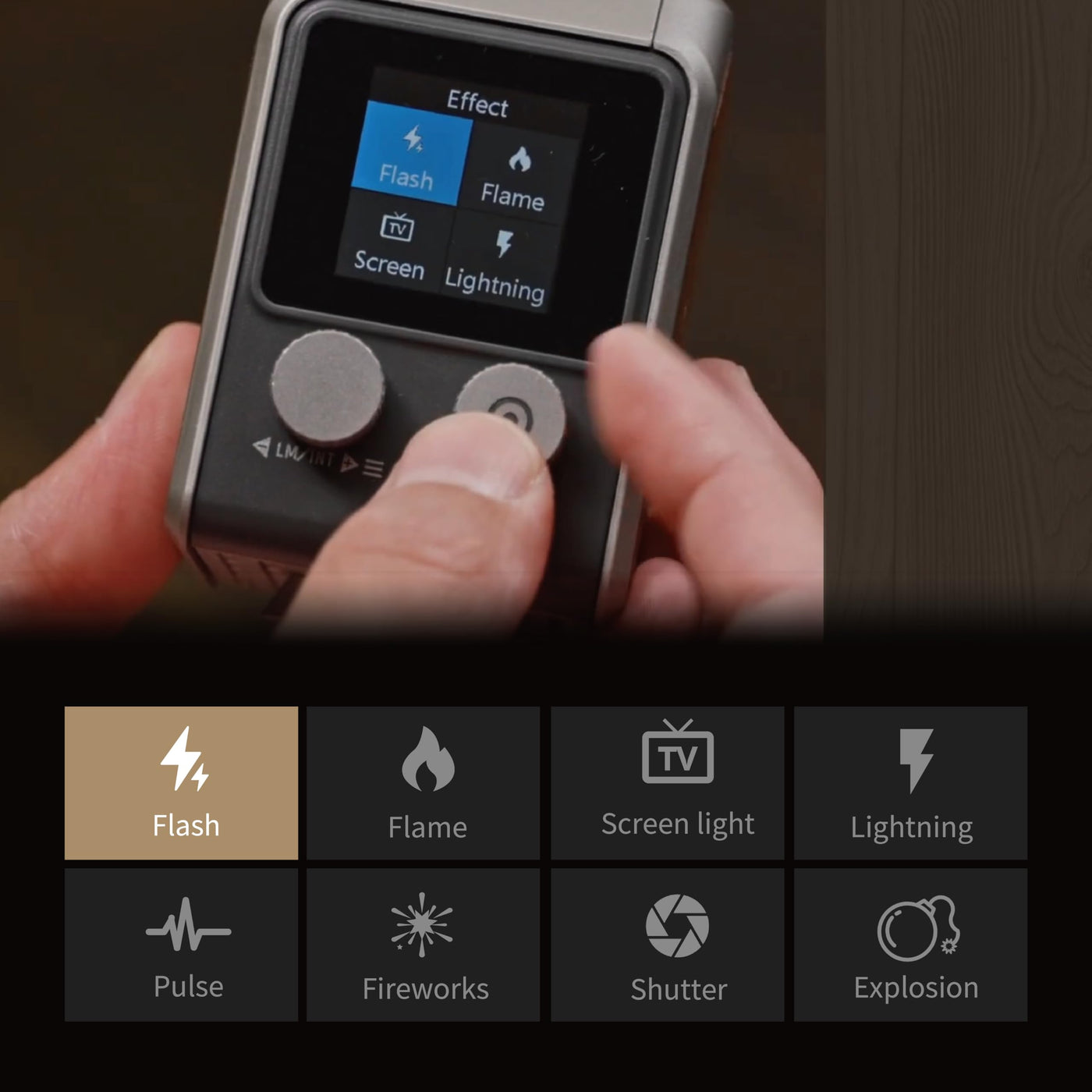 Q: What are the lighting modes available on the Hobolite Micro LED Video Light?A: The Hobolite Micro features 8 versatile lighting modes including Flash, Flame, TV Screen, Lightning, Pulse, Fireworks, Shutter, and Explosion. You can easily select the desired mode through the Mobile App or the HD LCD Display.